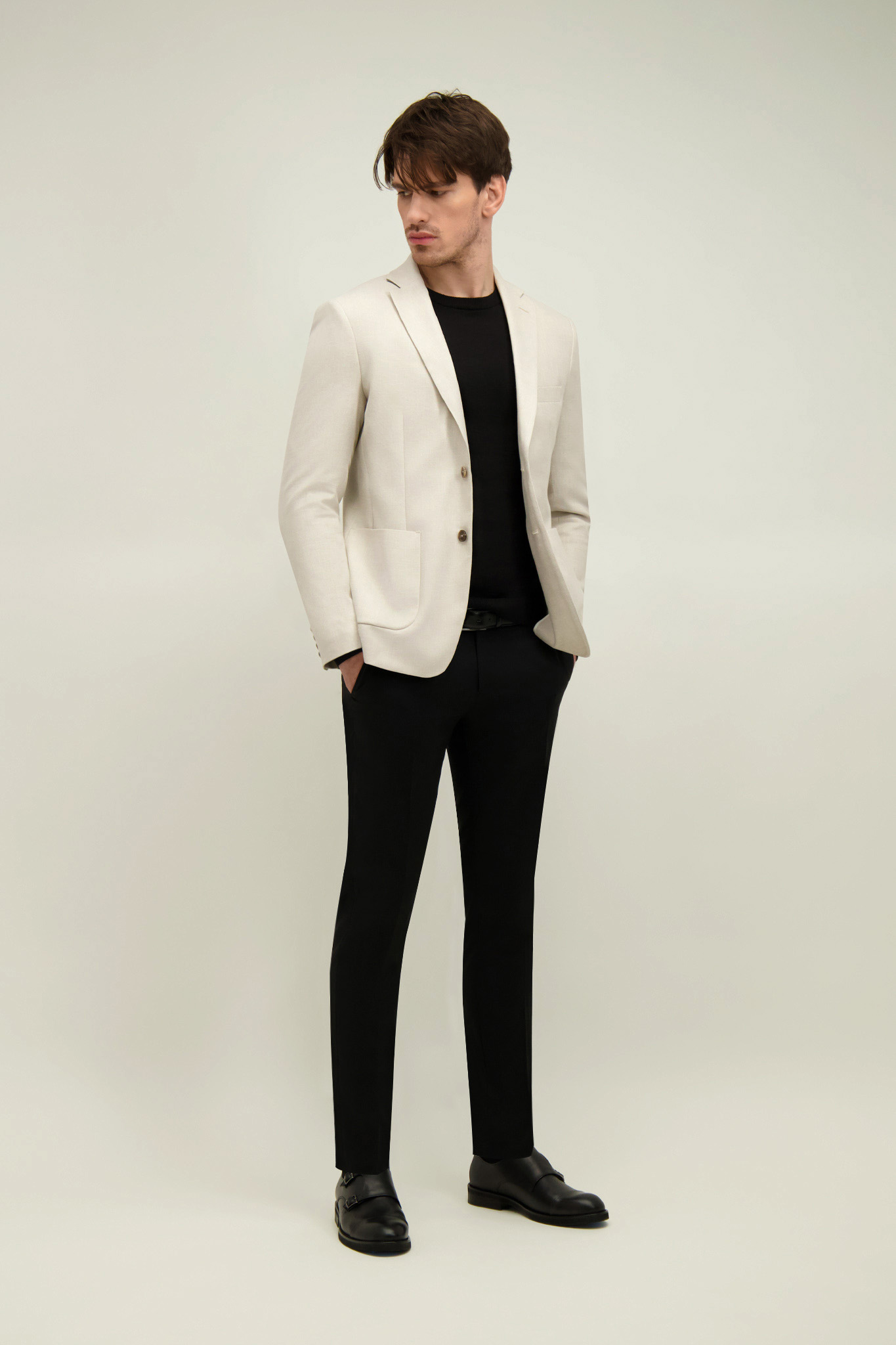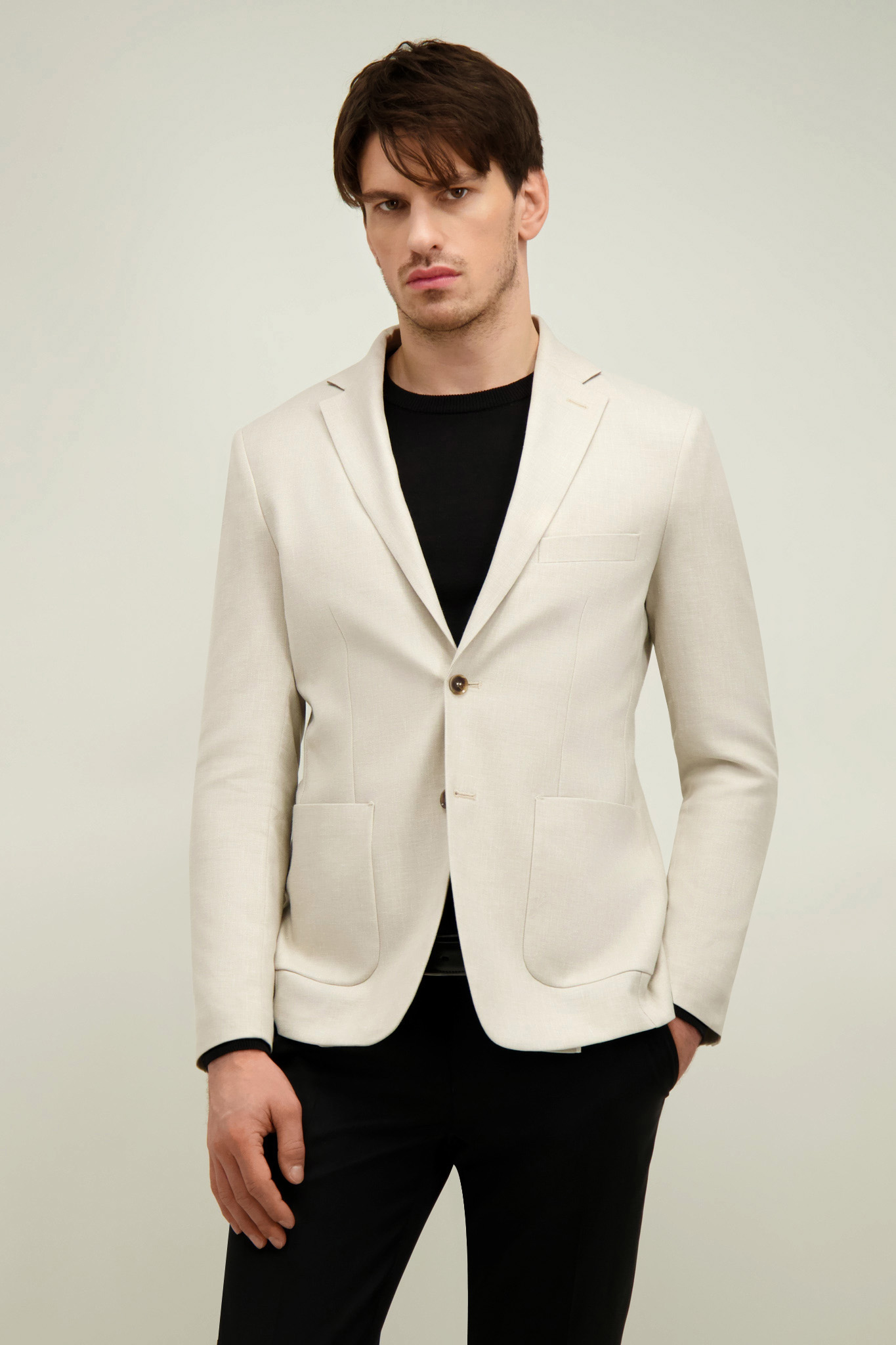 Beżowa marynarka męska z bawełną i lnem 46494