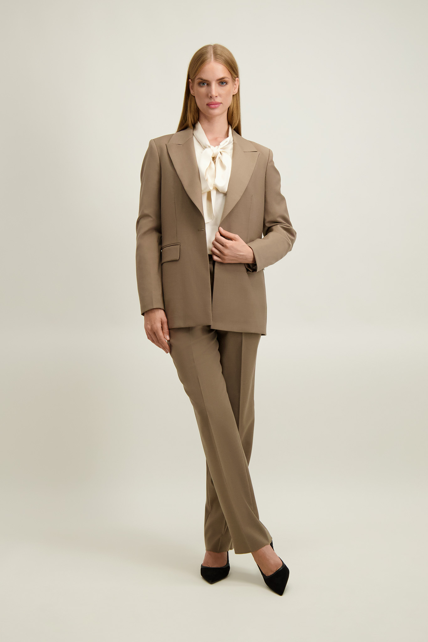 Beżowo-szara marynarka damska z wełną 87523