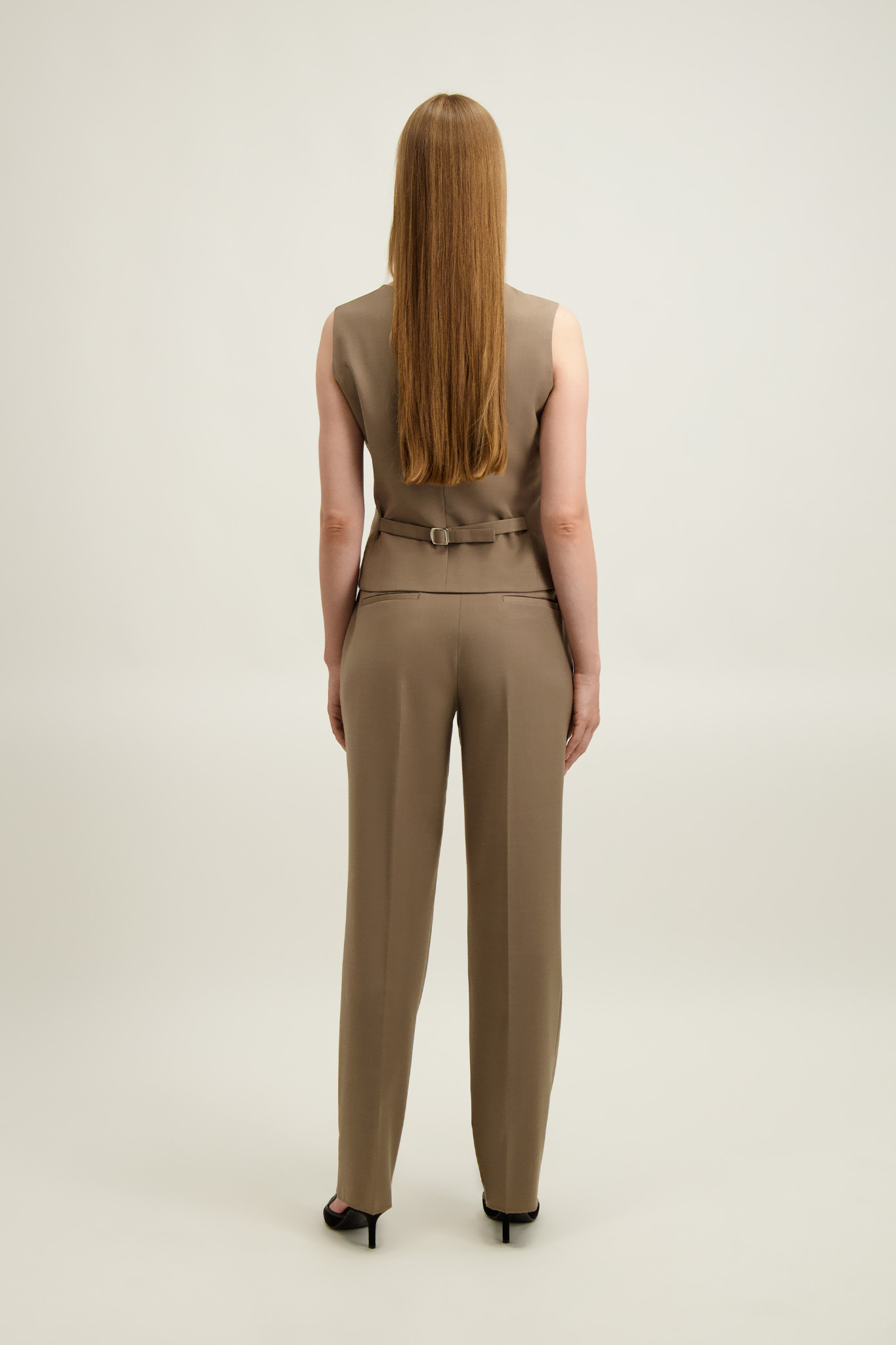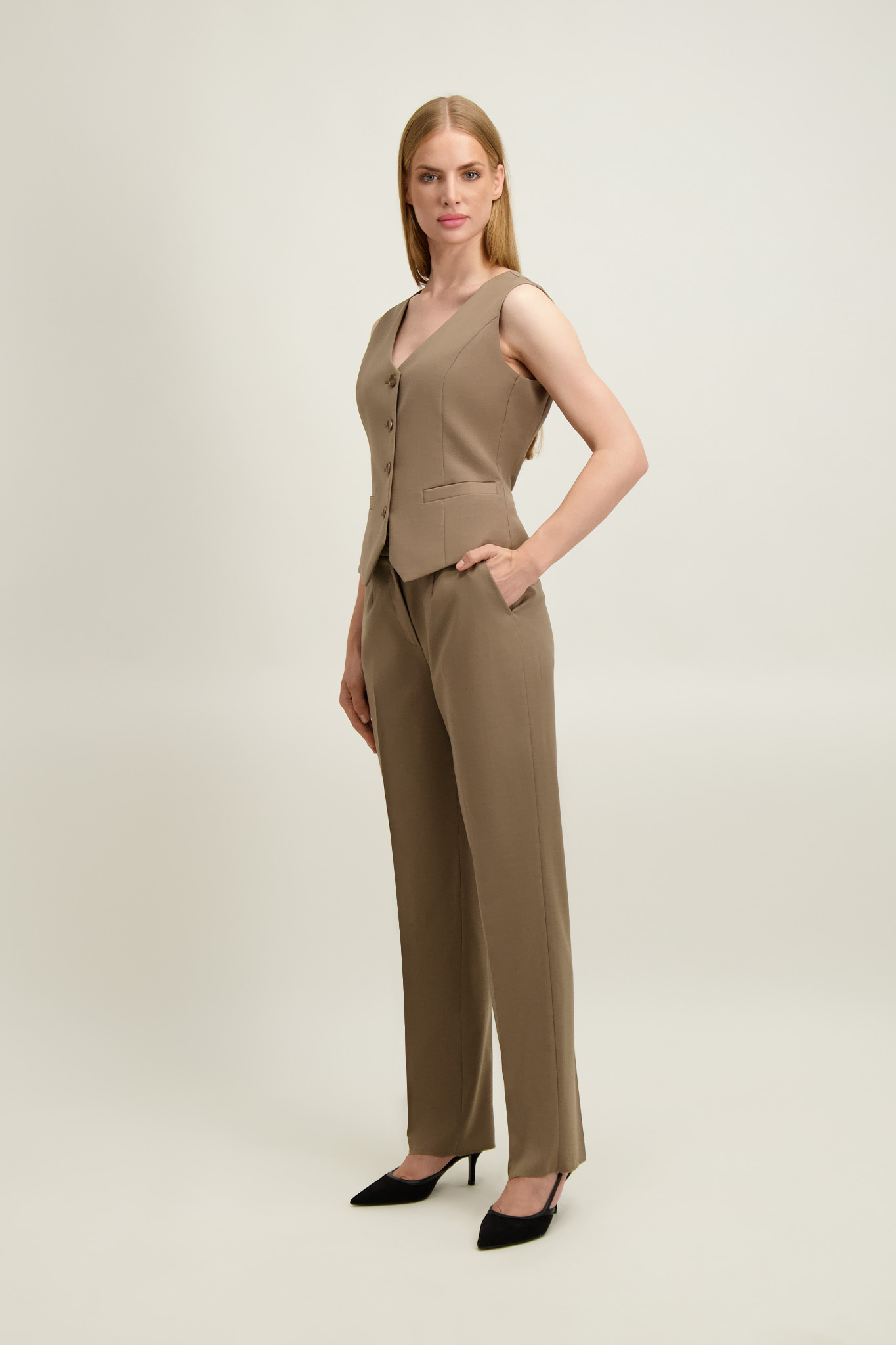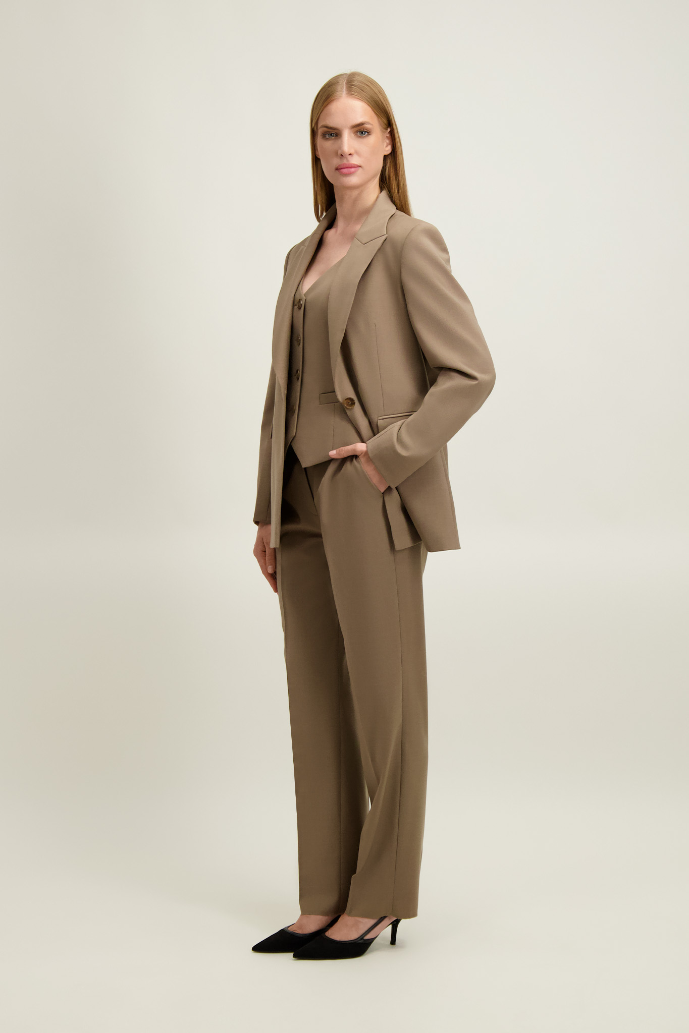 Spodnie z marynarką (87523) i kamizelką (87525) z tej samej tkaniny tworzą komplet.