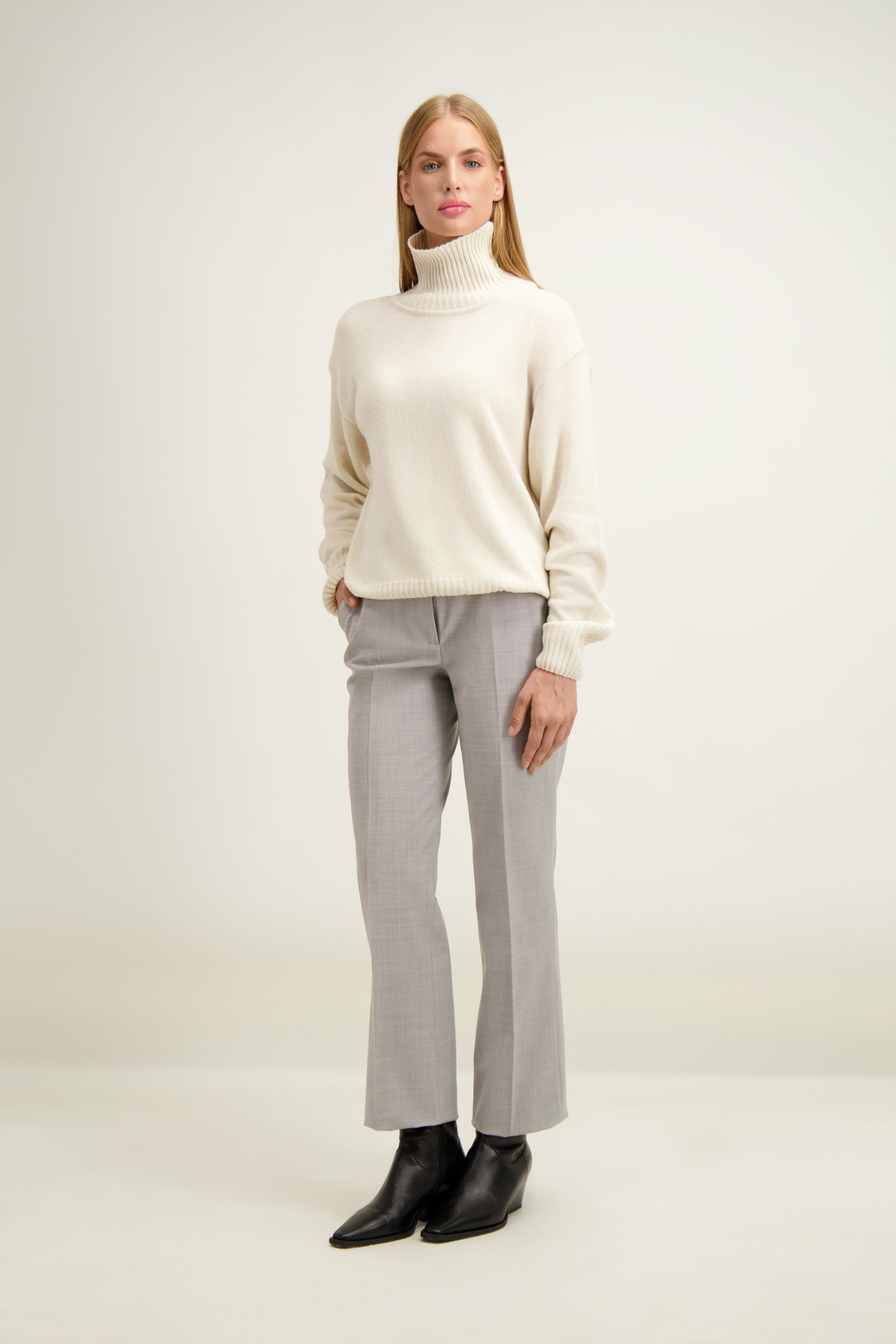 Beżowy golf damski z wełną merino 87448