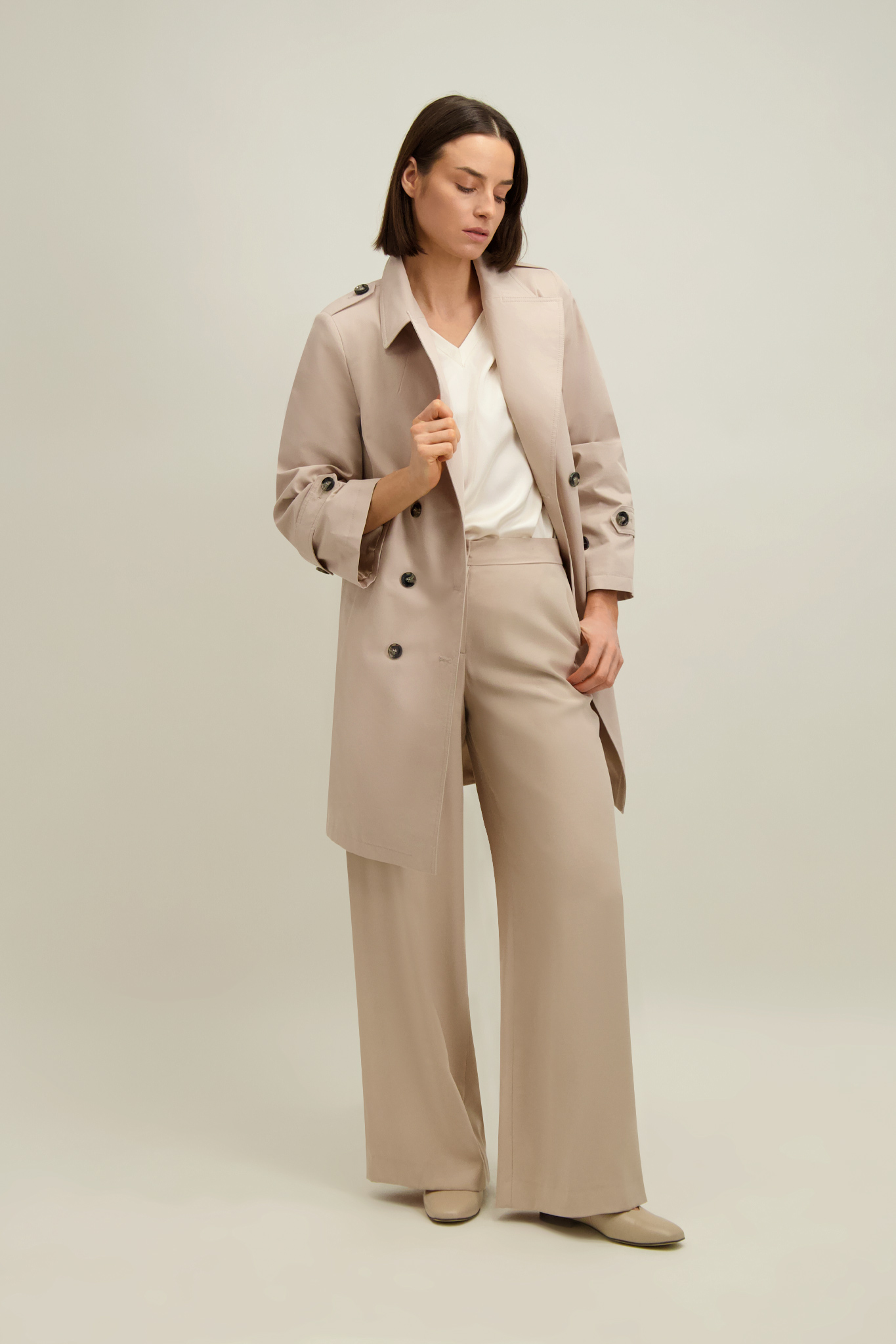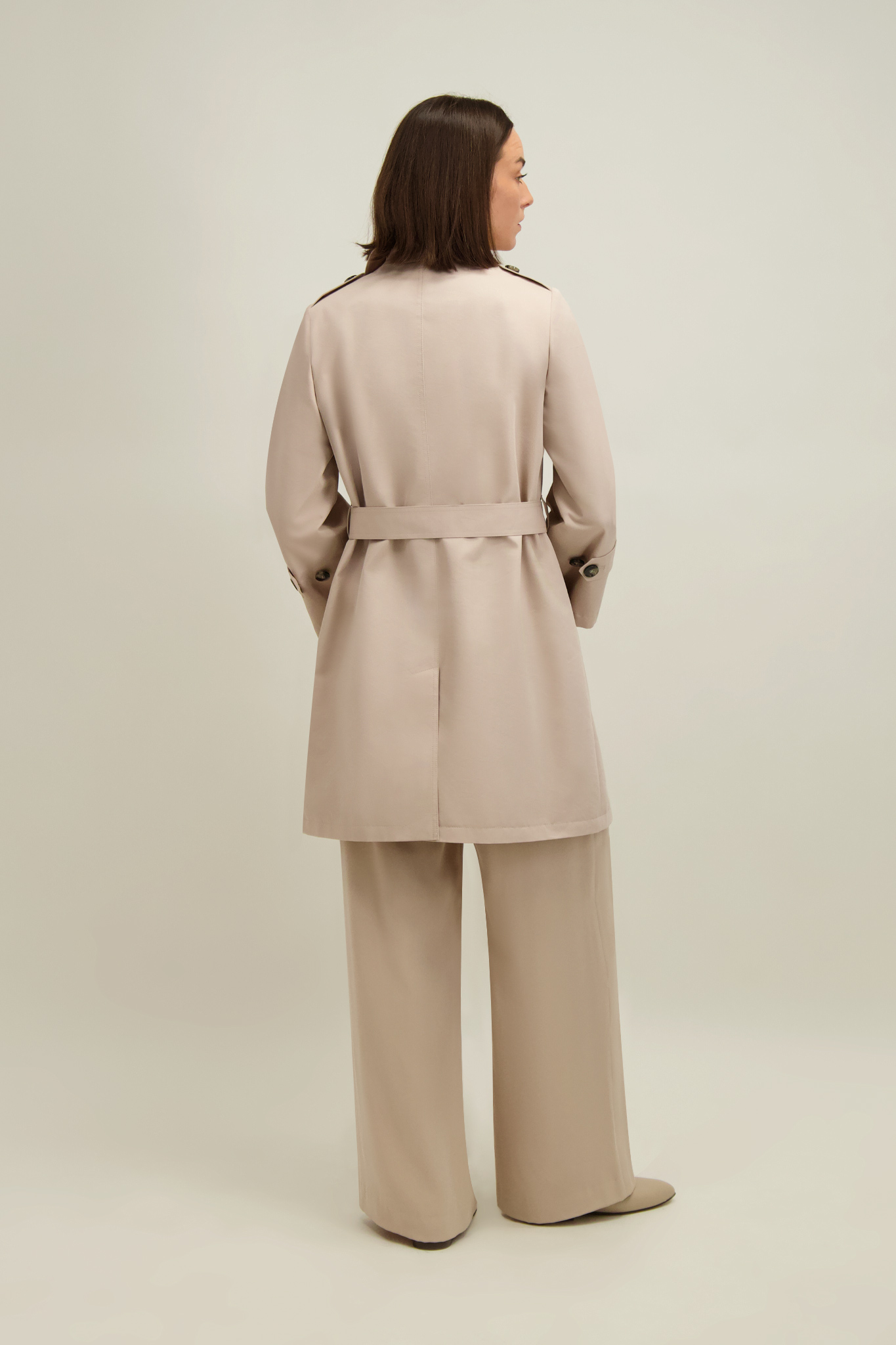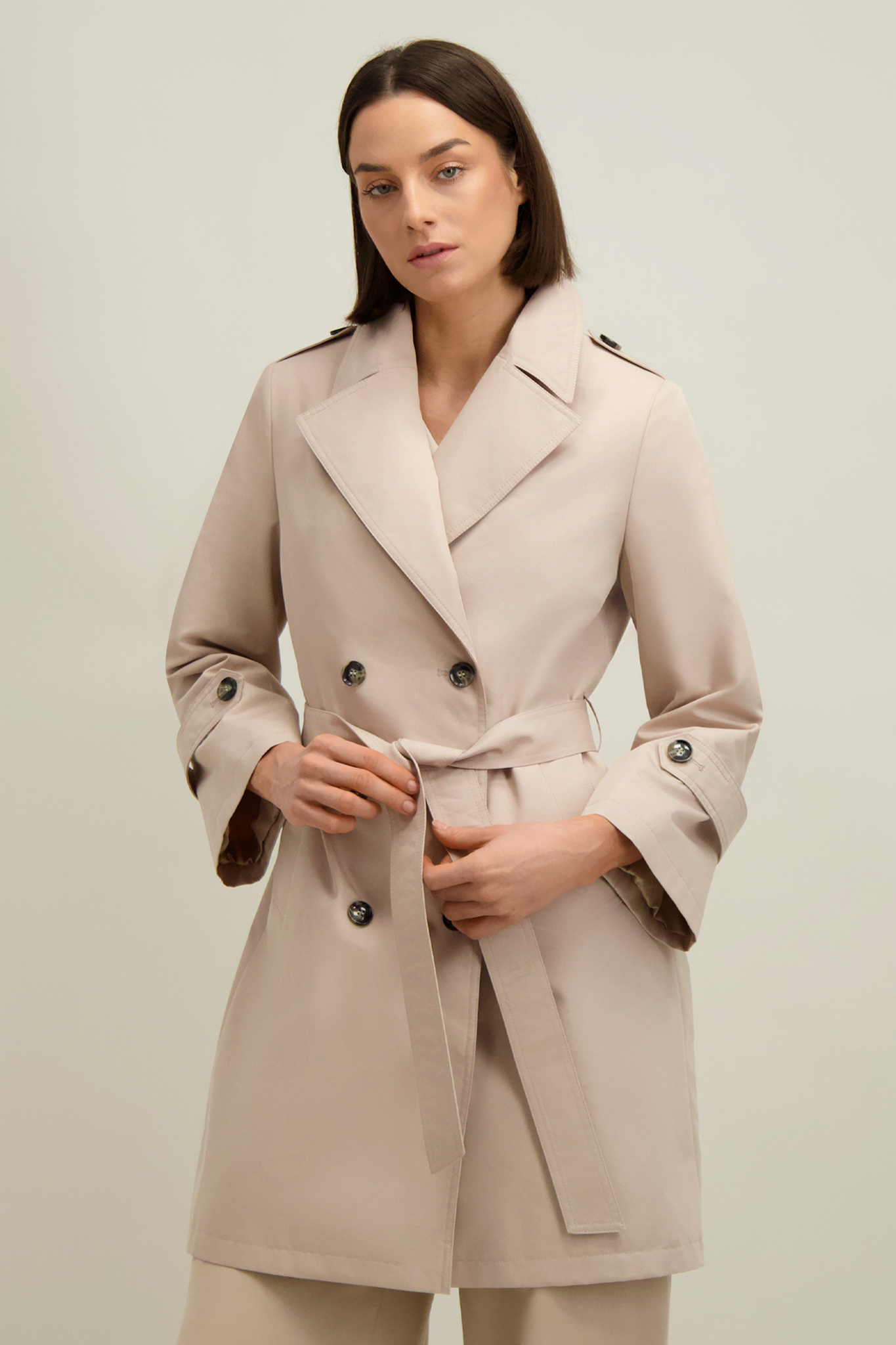Beżowy płaszcz damski z bawełną 87554