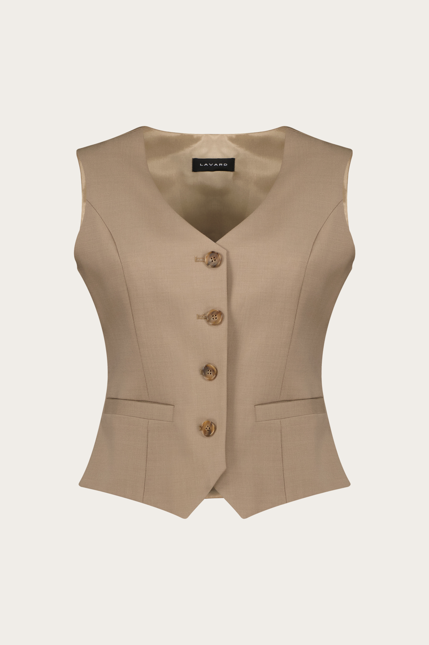 Kamizelka z marynarką (87523) i spodniami (87524) z tej samej tkaniny tworzy komplet.