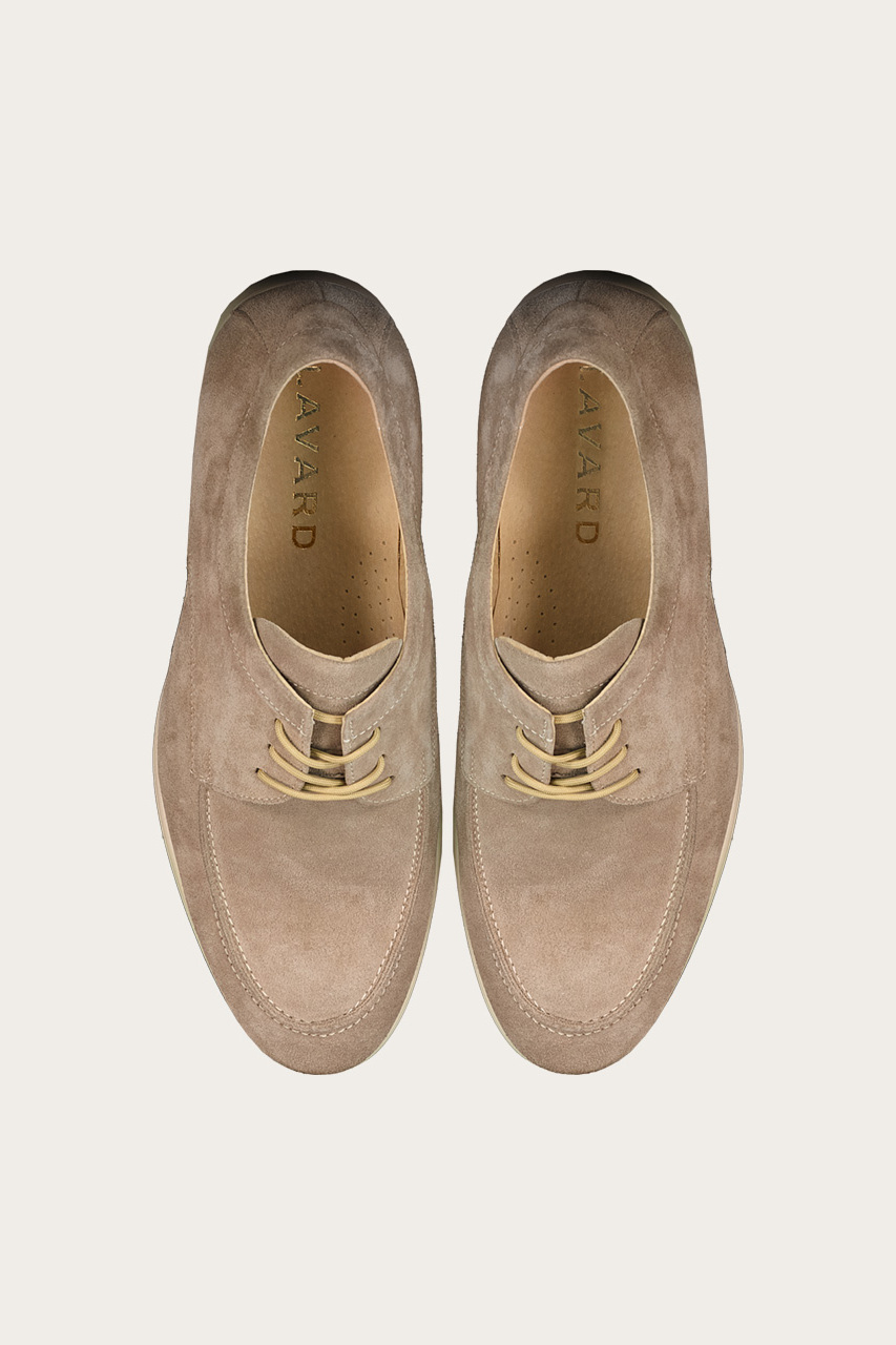 Beżowe buty wykonane z najwyższej jakości skóry naturalnej zamszowej.