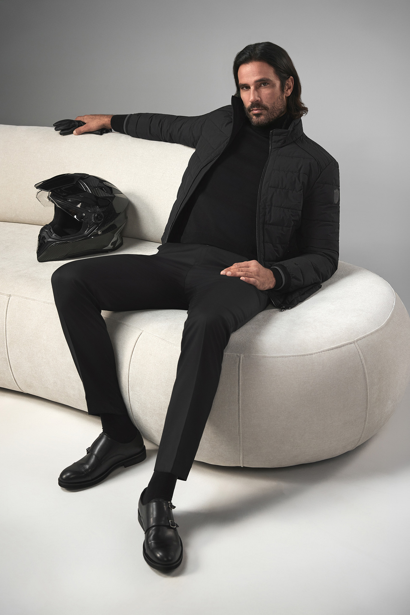Model ma 187 cm wzrostu i prezentuje rozmiar 50.