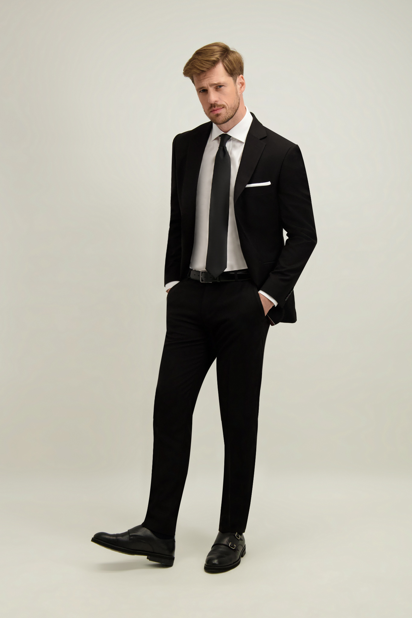 Spodnie z marynarką (46476) z tej samej tkaniny tworzą garnitur.
