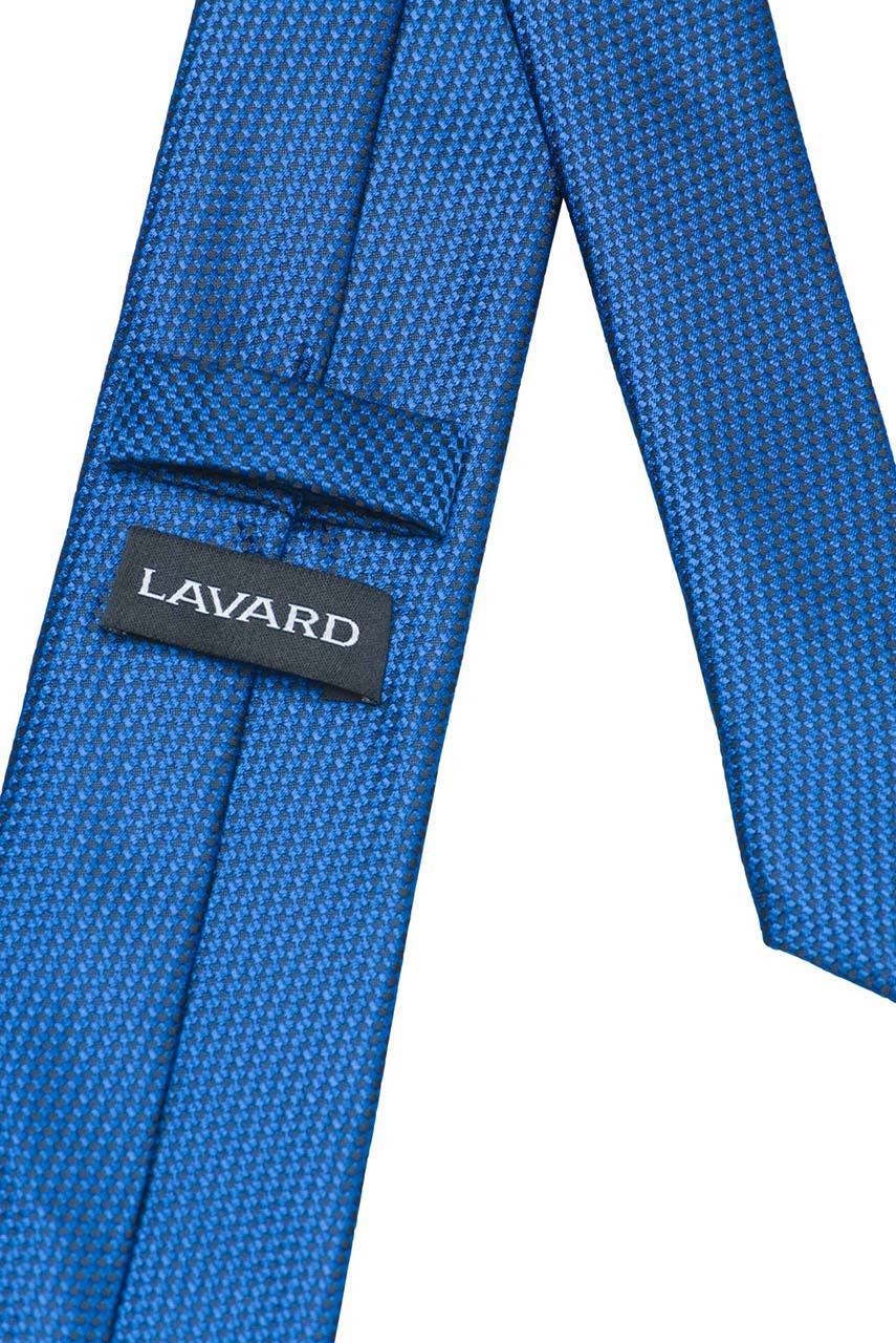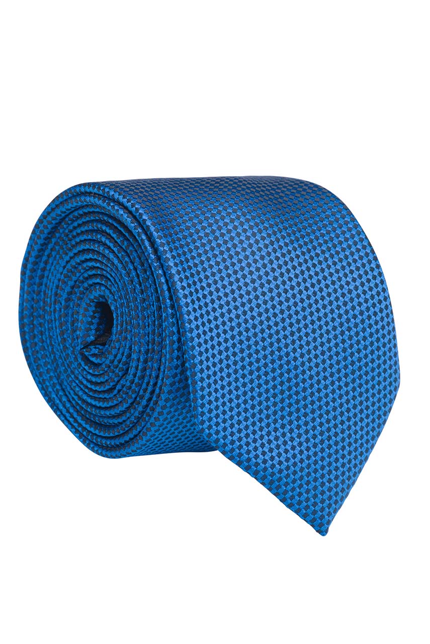 Elegancki granatowy krawat o delikatnym czarnym wzorze.