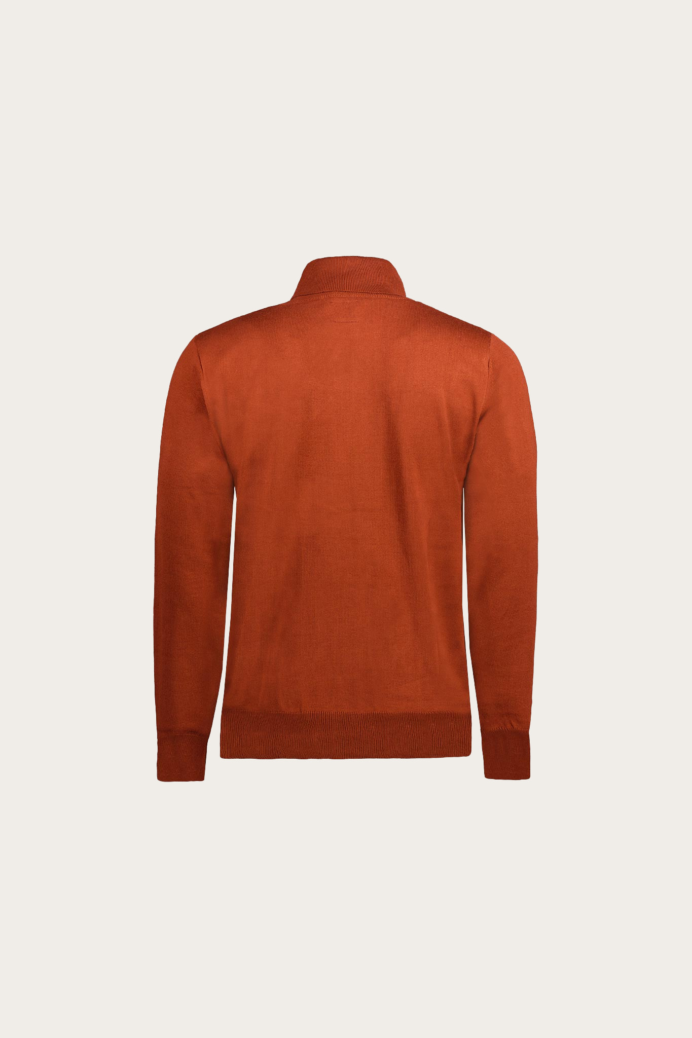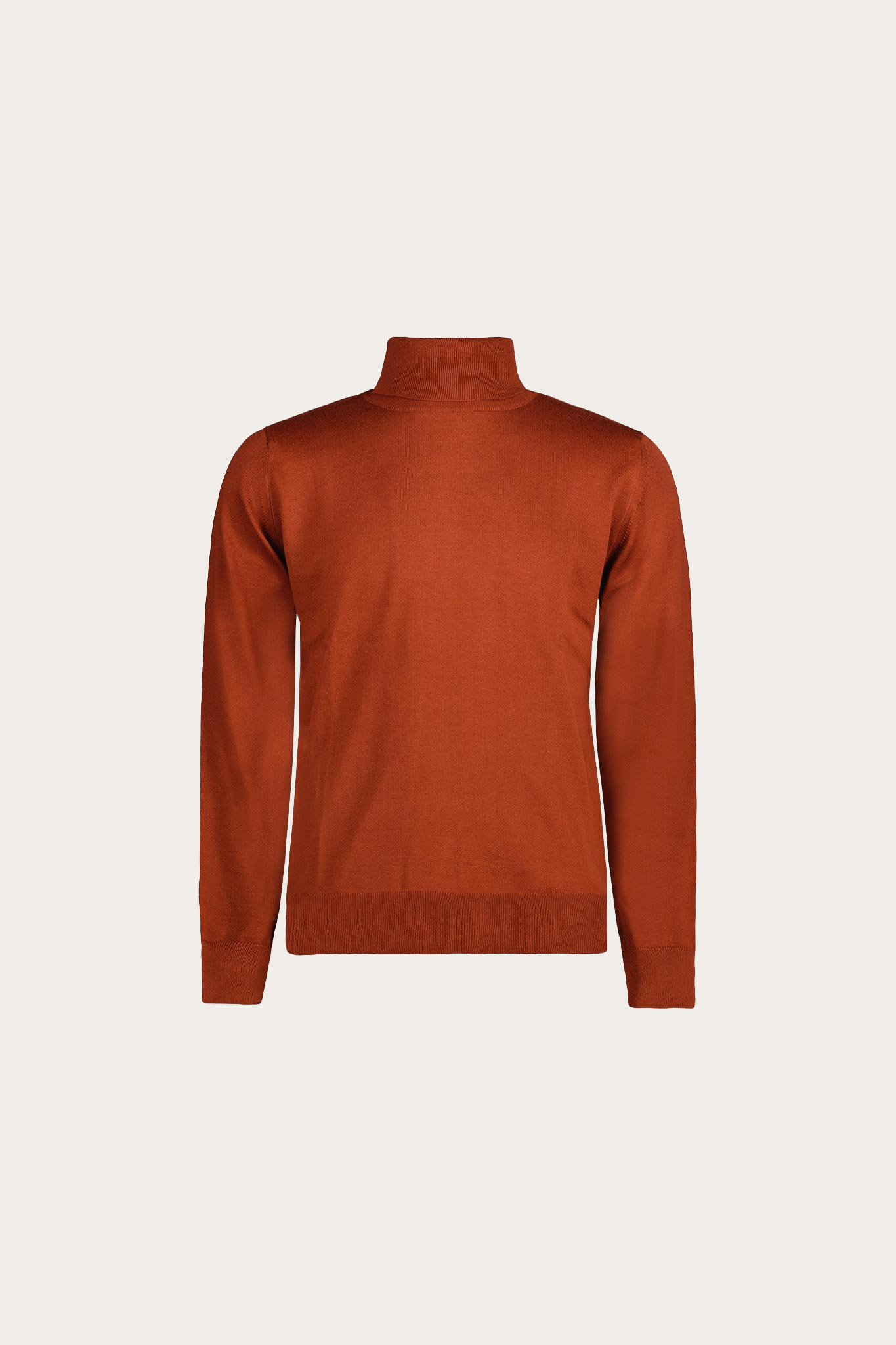 Golf męski w intensywnym, brązowym odcieniu. Uszyty z delikatnej i przyjemnej dzianiny z dodatkiem bawełny. Model o klasycznym fasonie.