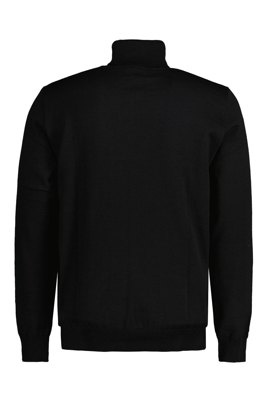Czarny golf uszyty z miękkiej i przyjemnej w dotyku dzianiny z dodatkiem bawełny. Model o klasycznym fasonie. Posiada ściągacze przy rękawach i na dole. Model ma 187 cm wzrostu. Prezentuje rozmiar M.
