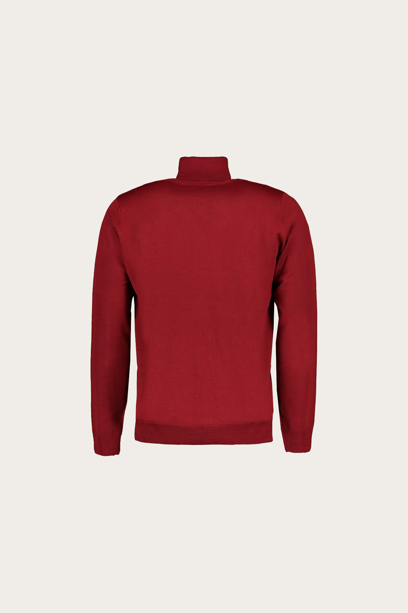 Bordowy golf męski uszyty z delikatnej i przyjemnej dzianiny z dodatkiem wełny z merynosa. Wełna z merynosa posiada certyfikat Mulesing Free, który zapewnia uczciwe traktowanie zwierząt i poszanowanie środowiska. Co więcej, wełna z merynosa jest miękka, elastyczna i "niegryząca", dzięki czemu golf jest bardzo komfortowy w użytkowaniu.