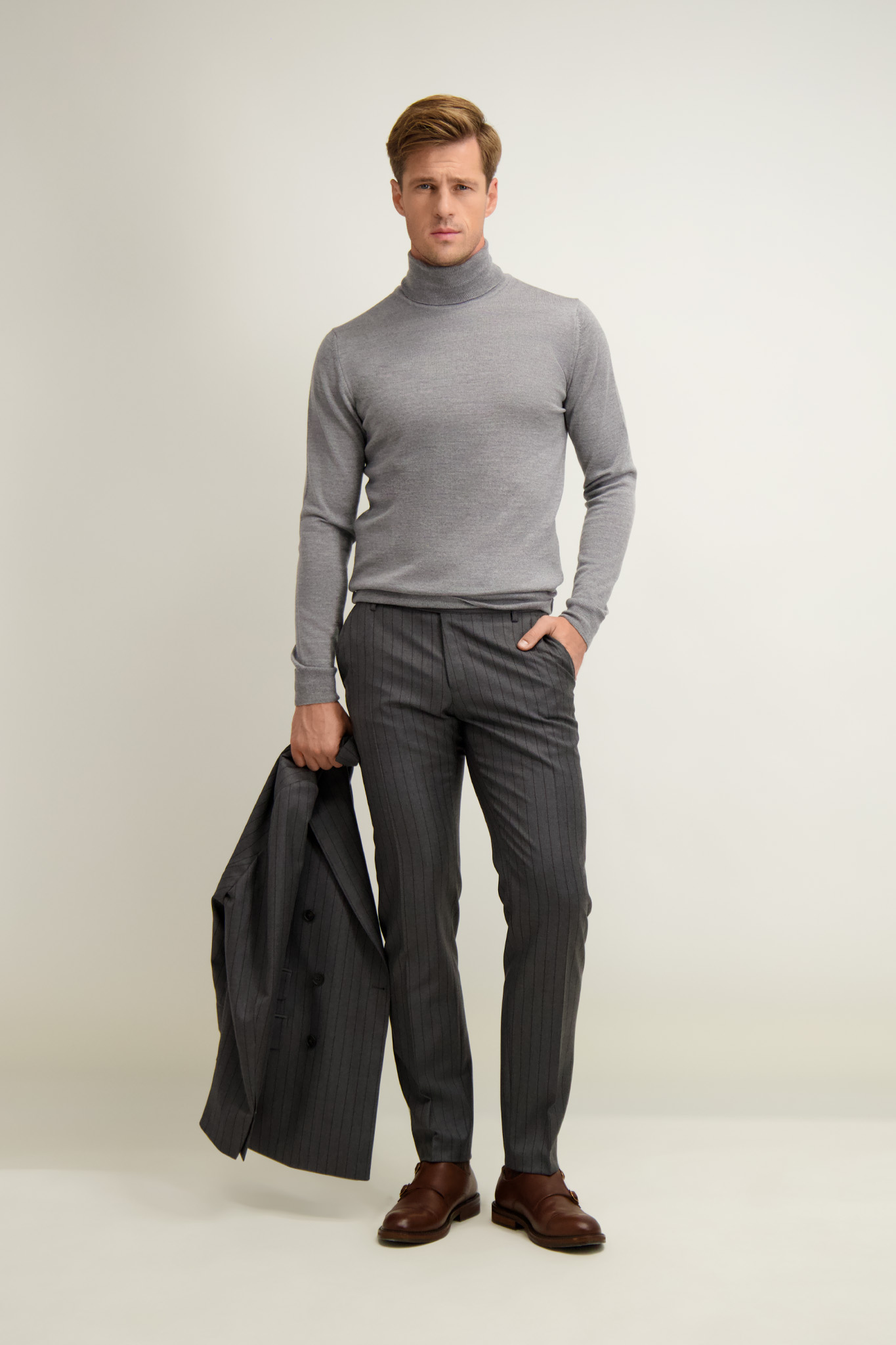 Szary golf o klasycznym fasonie. Uszyty w 100% z miękkiej i przyjemnej w dotyku wełny merino.