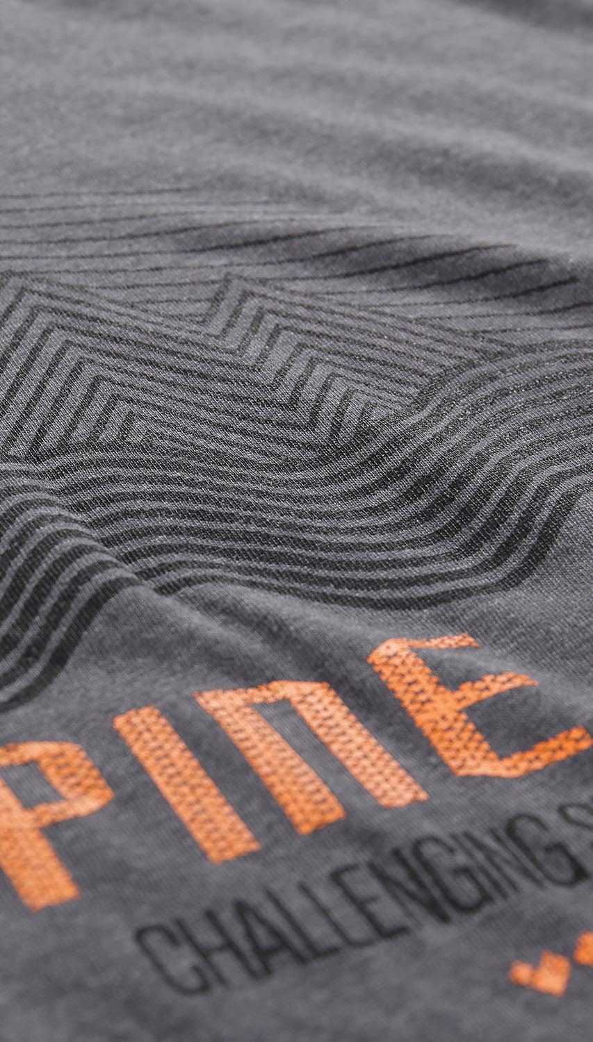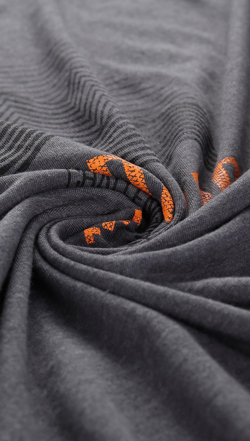Grafitowy t-shirt z nadrukiem uszyty z wysokiej jakości tkaniny. Koszulka o regularnym kroju, doskonale układa się na sylwetce. To model, który fantastycznie odnajdzie się podczas wycieczek, spacerów czy spotkań z przyjaciółmi.