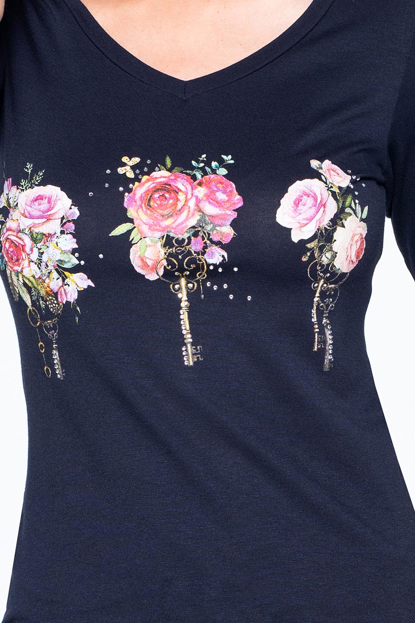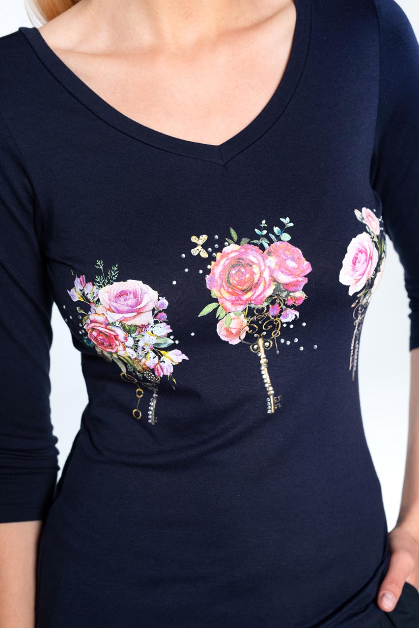 Granatowa bluzka z kolorowym nadrukiem 58509