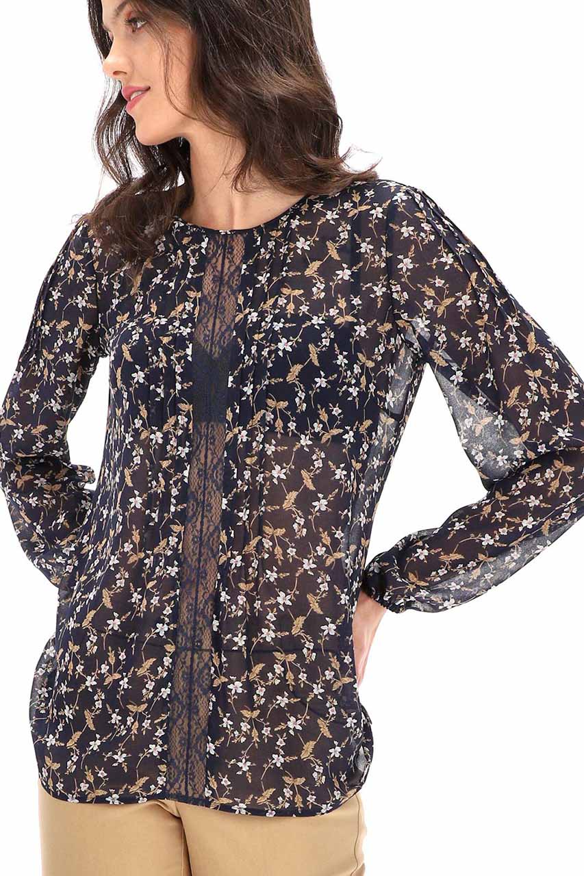 Granatowa bluzka z motywem kwiatowym 58107