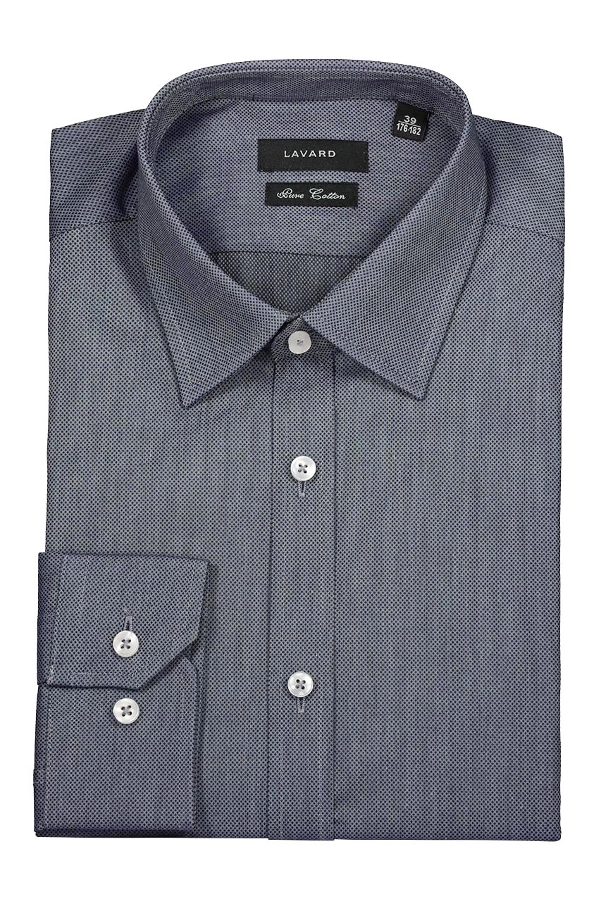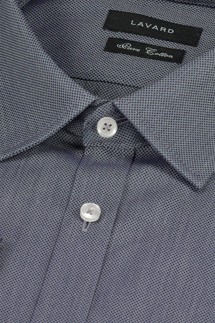 Granatowa koszula w mikro wzór to model zarówno do garnituru jak i casualowych zestawień. Model o doskonałym, dopasowanym kroju pięknie podkreśli atuty sylwetki. Koszula świetnie prezentuje się z granatami, beżami, bordo i camelem.