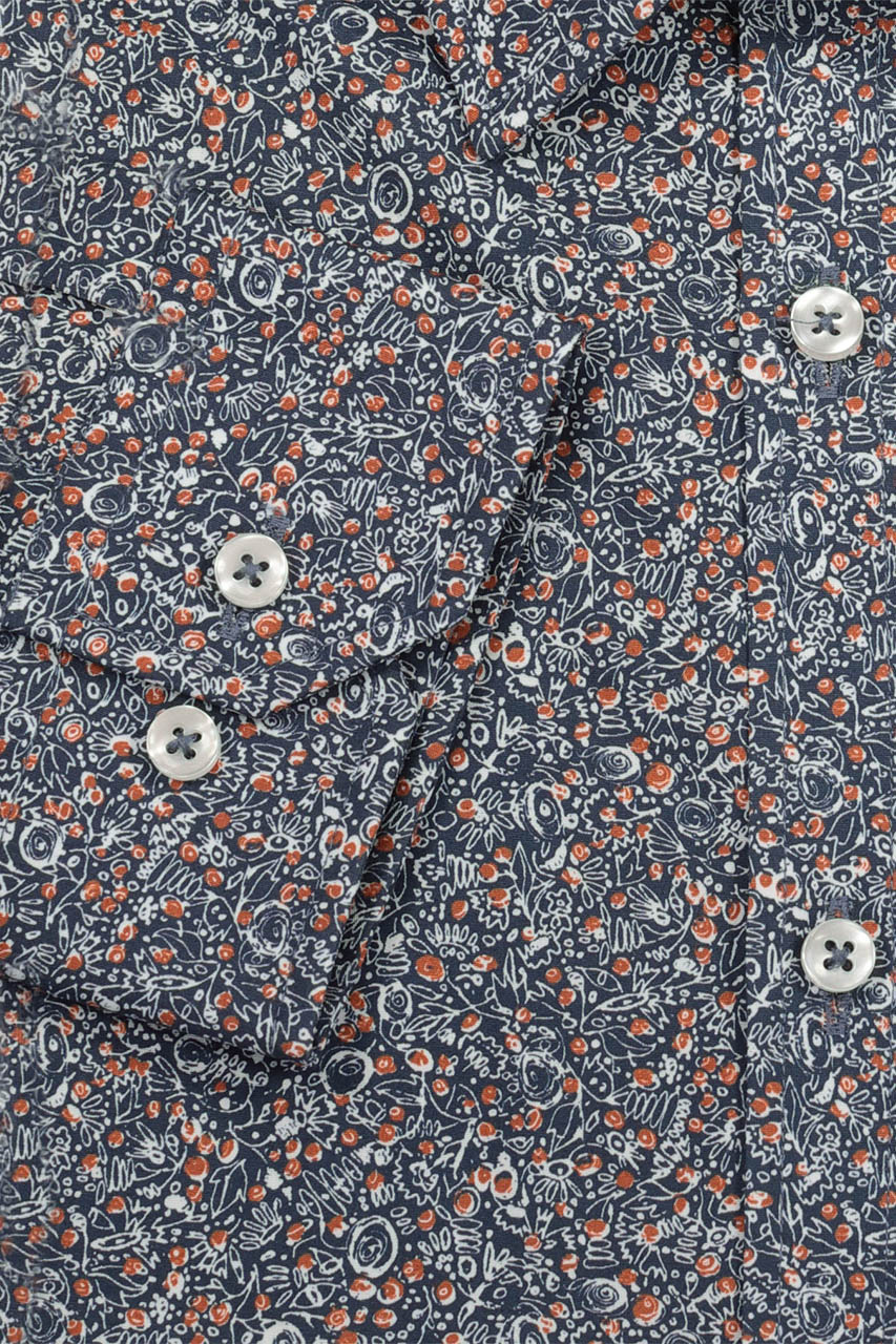 Granatowa koszula we wzory w pięknym odcieniu camelu i ponadczasowej bieli. Model wykonany z wysokiej jakości bawełny. Naturalna tkanina zapewnia bardzo wysoki komfort użytkowania. Koszula o modnym, dopasowanym kroju, pięknie podkreśla atuty sylwetki. Propozycja świetnie spisuje się w casualowych zestawieniach.