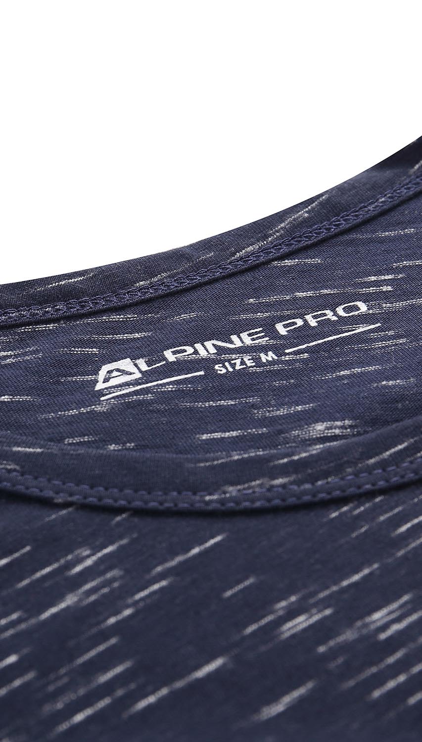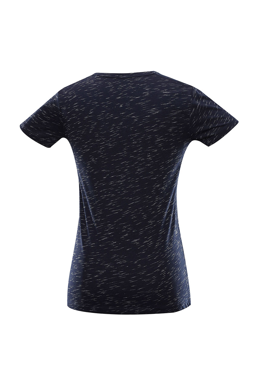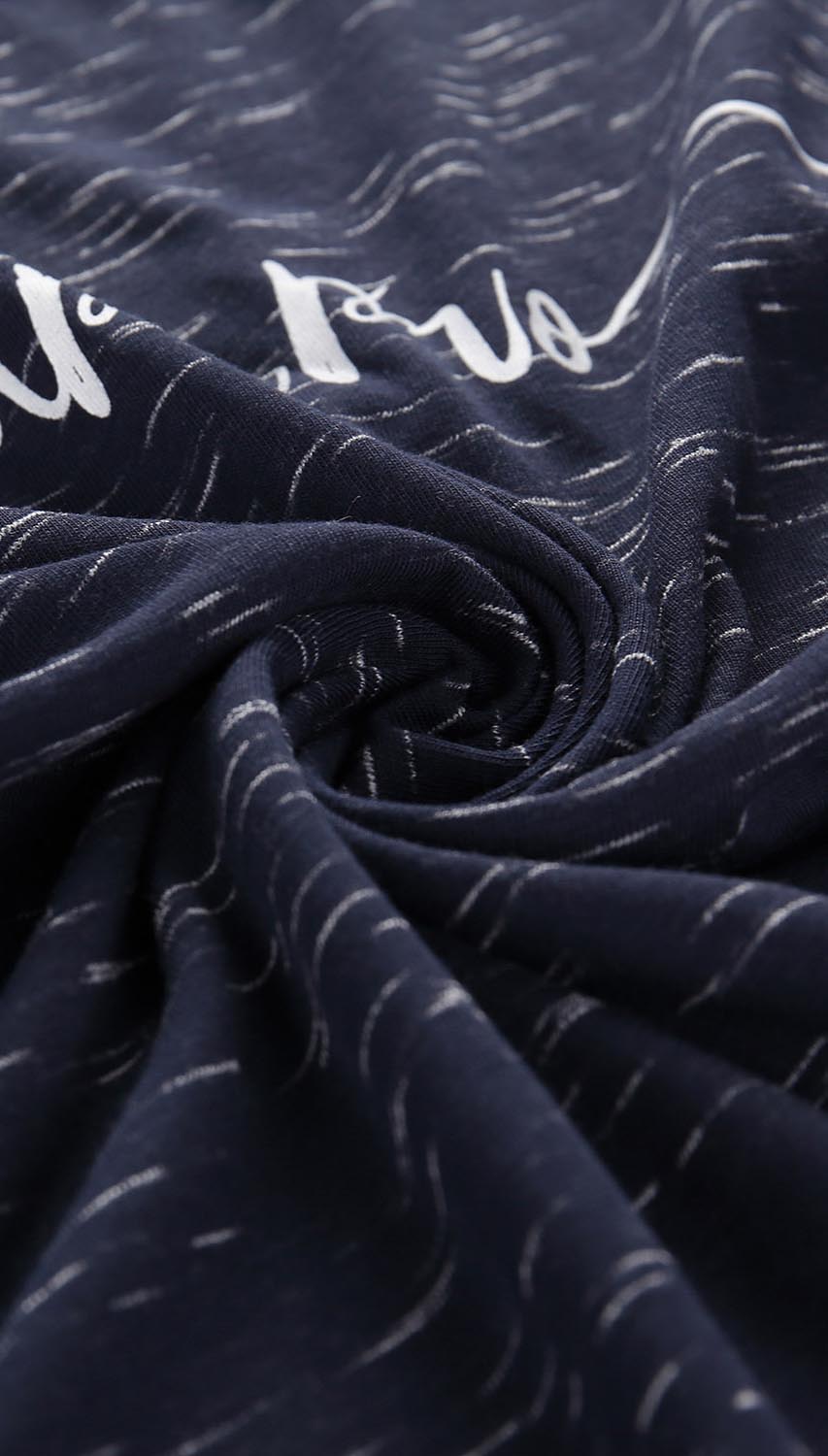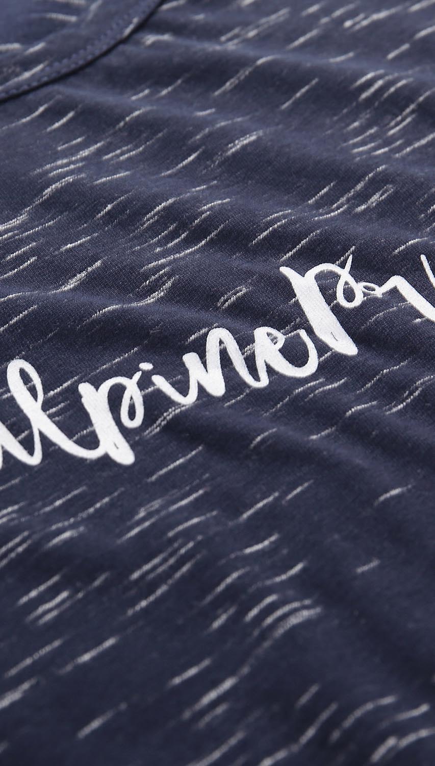 Granatowa koszulka damska o regularnym kroju. Posiada okrągły dekolt oraz kobiecy nadruk. Koszulka została uszyta z mieszanki wysokiej jakości bawełny oraz wiskozy, które są przyjazne skórze i pozwalają jej oddychać. To świetna propozycja dla każdej modnej kobiety zarówno na co dzień, ale także na aktywny spacer lub trening.