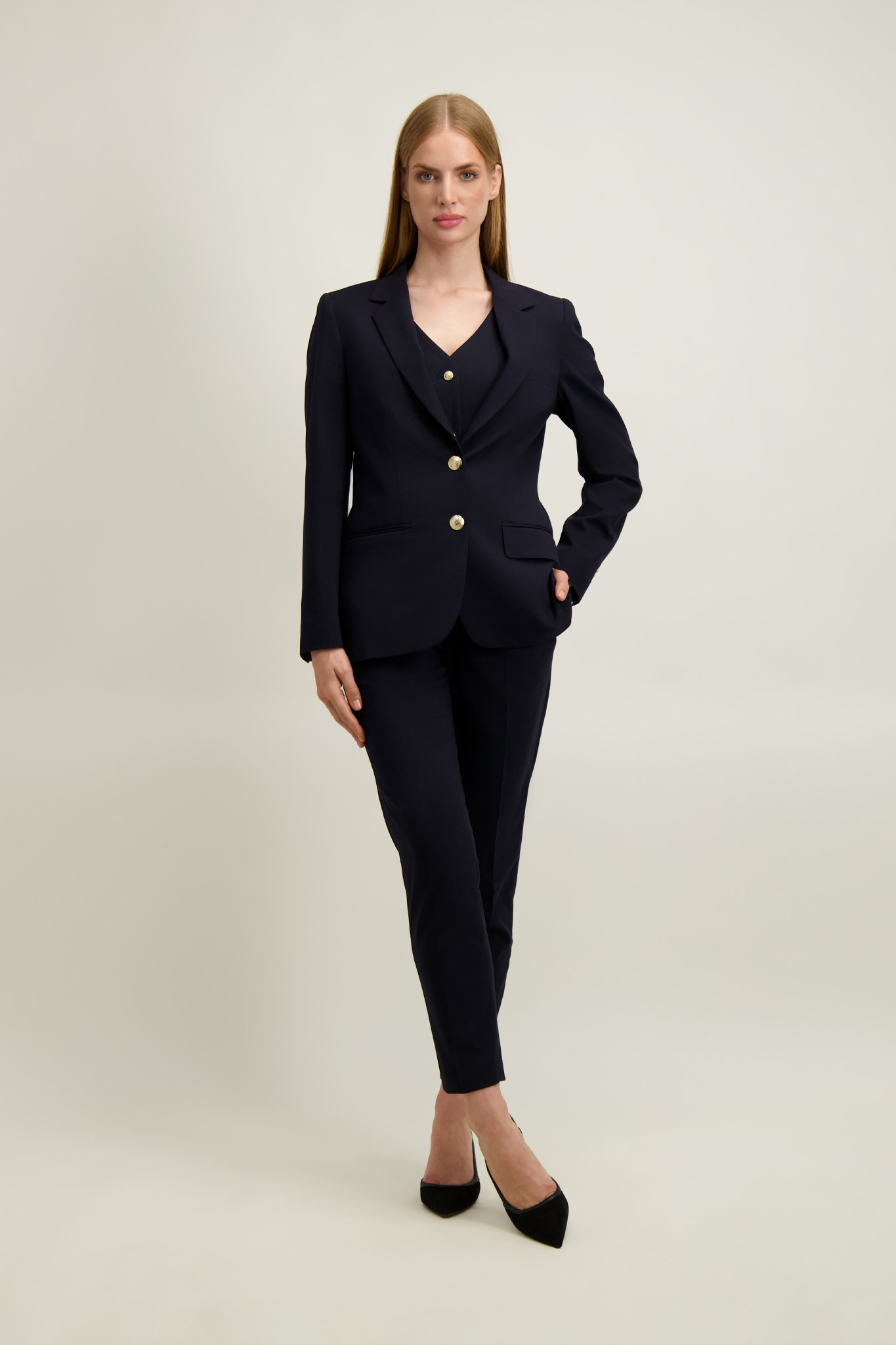 Marynarka ze spodniami (87503 lub 87404) z tej samej tkaniny tworzy garnitur. Z tej samej linii występuje również marynarka (87403) oraz kamizelka (87504).