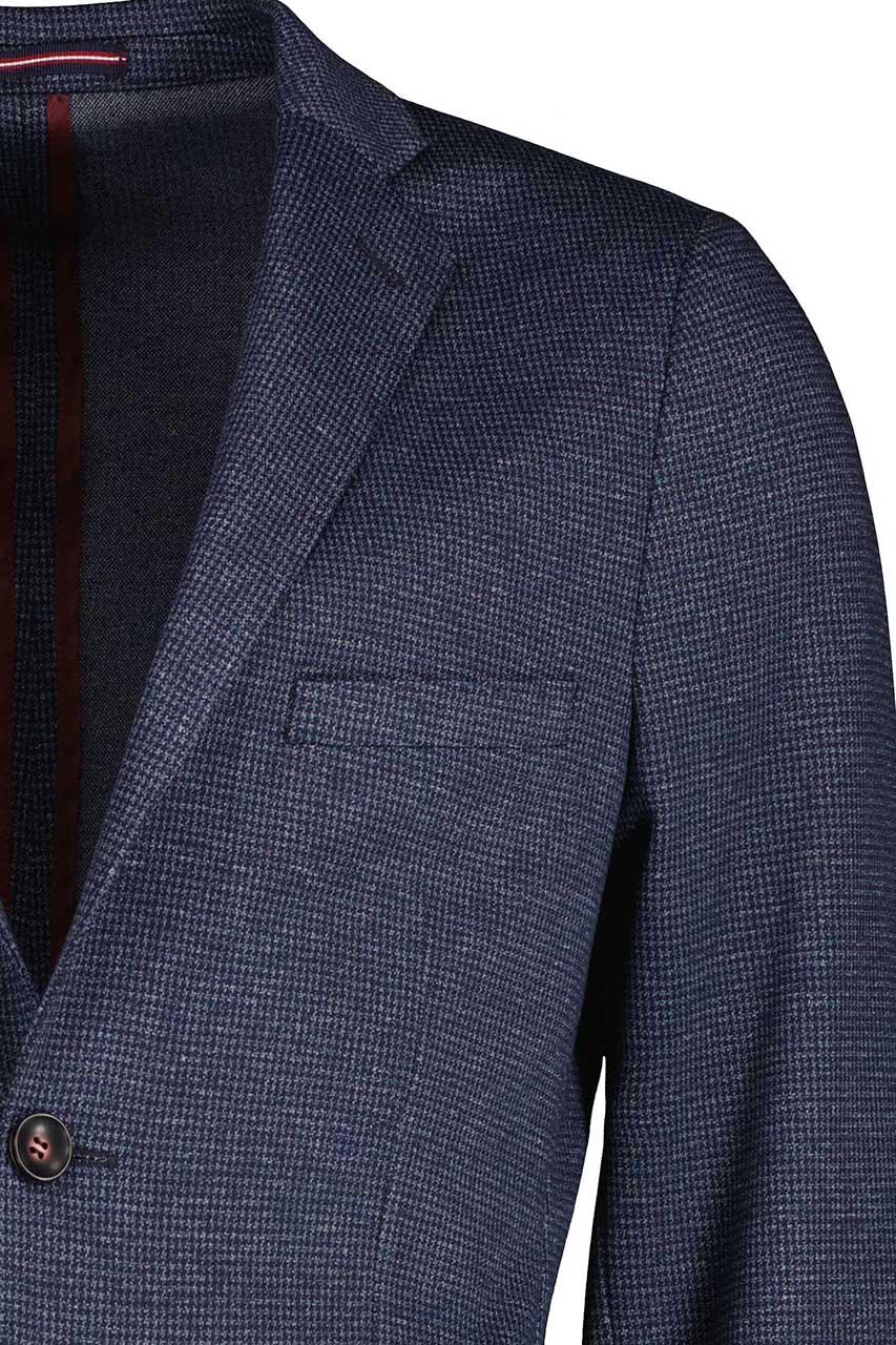 Marynarka w drobną pepitkę uszyta z miękkiej i przyjemnej w chwycie tkaniny. Model o klasycznym fasonie. Bez podszewki. Wyprodukowano w Polsce.