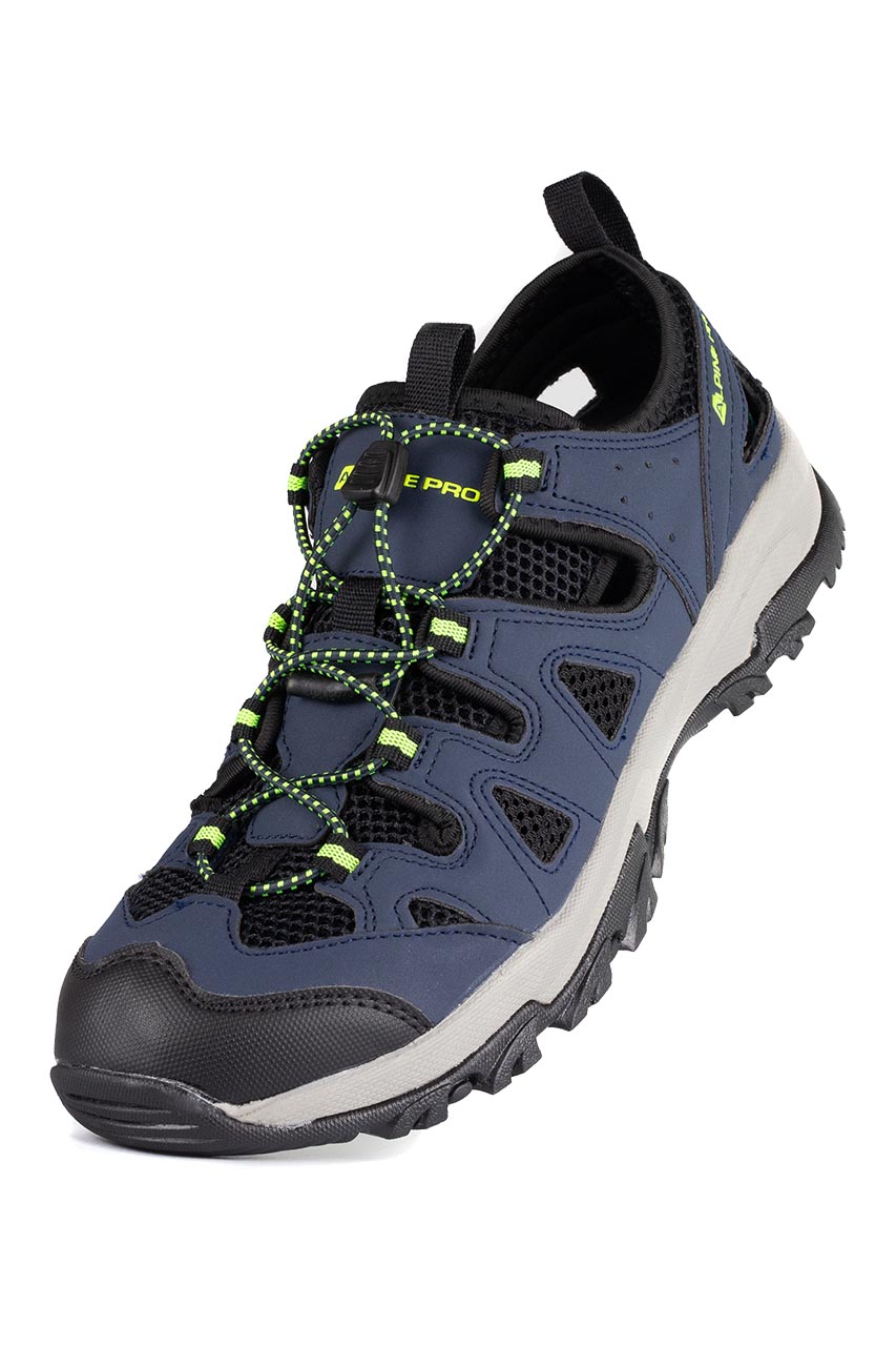 Lekkie buty turystyczne w odcieniu czerni i granatu z akcentami neonowej zieleni. Buty z wytrzymałą gumową podeszwą. Zostały wykonane z syntetycznej tkaniny z otworami zapewniającymi wentylację. Jest to model przeznaczony na długie spacery oraz letnie wędrówki górskie. Solidna, antypoślizgowa i odporna na ścieranie podeszwa zapewnia komfort użytkowania nawet po kilku godzinach marszu, a otwory z siateczką i wkładka wewnętrzna pozwalają oddychać skórze.