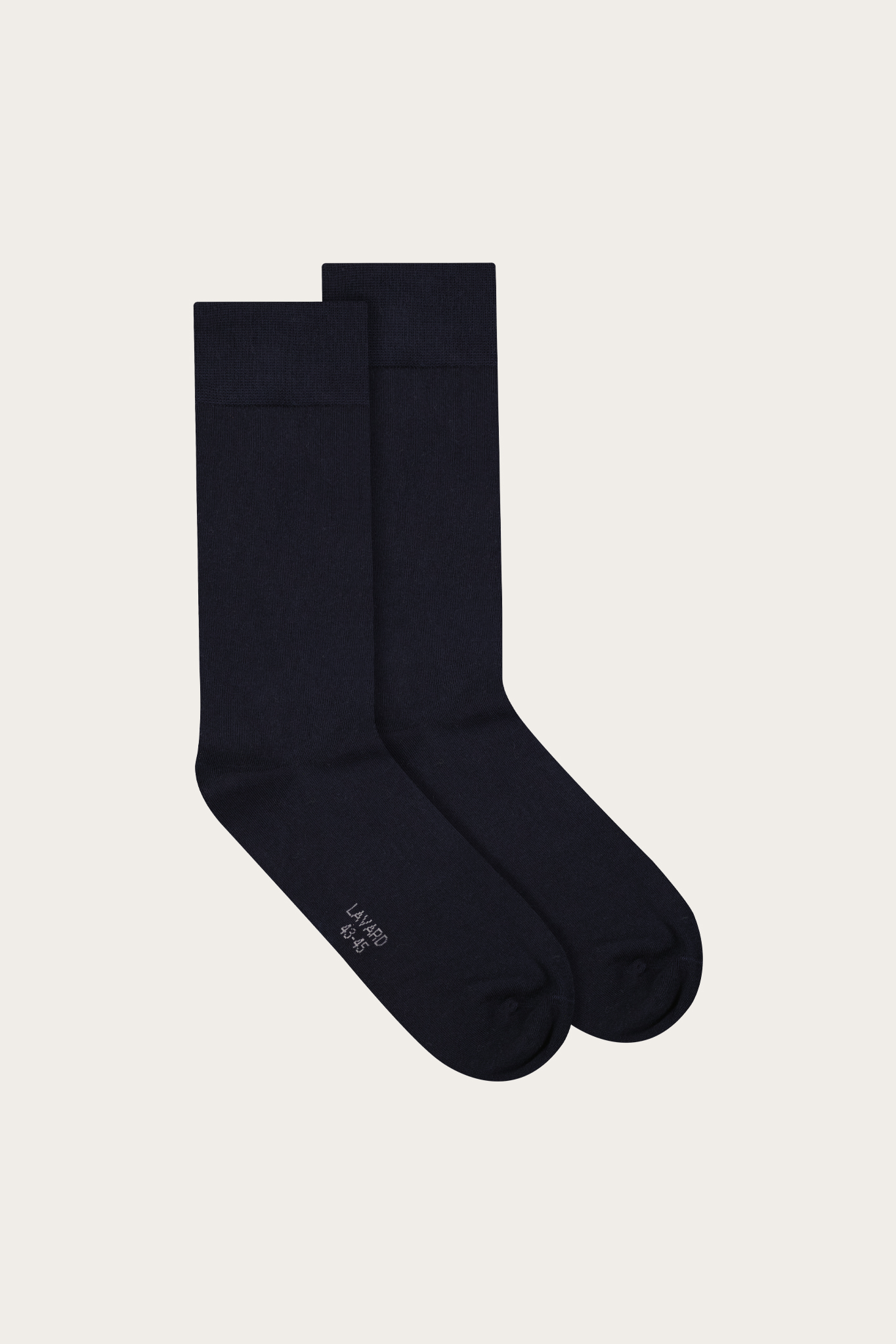 Granatowe gładkie skarpety męskie z bawełną 76155 - 634981