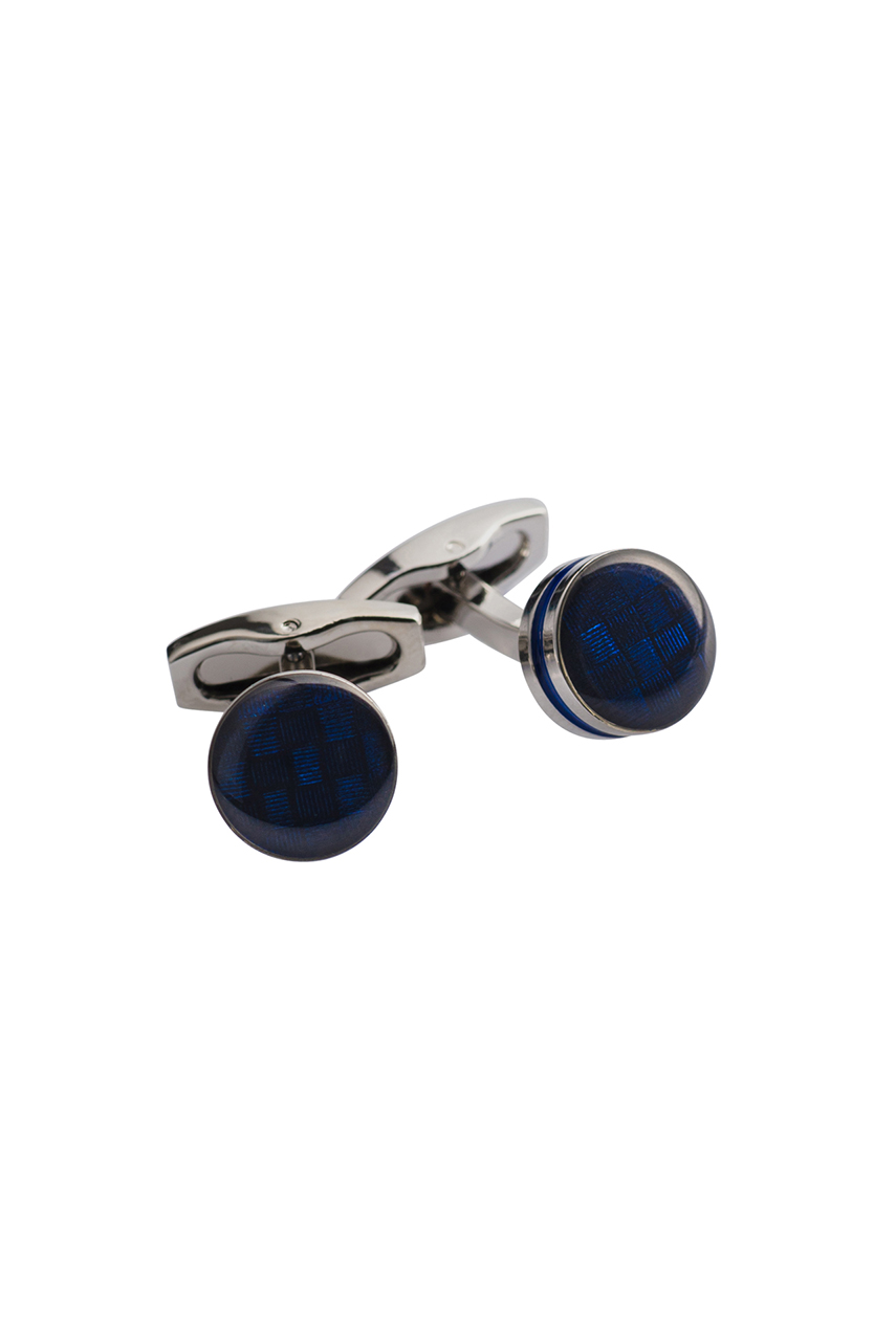 Granatowe okrągłe spinki z motywem szachownicy 57107