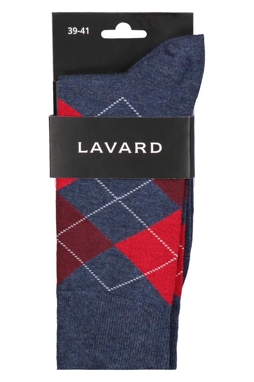 Granatowe skarpety w czerwone i bordowe romby. Model bardzo wygodny i komfortowy. Idealny do casualowych zestawień.