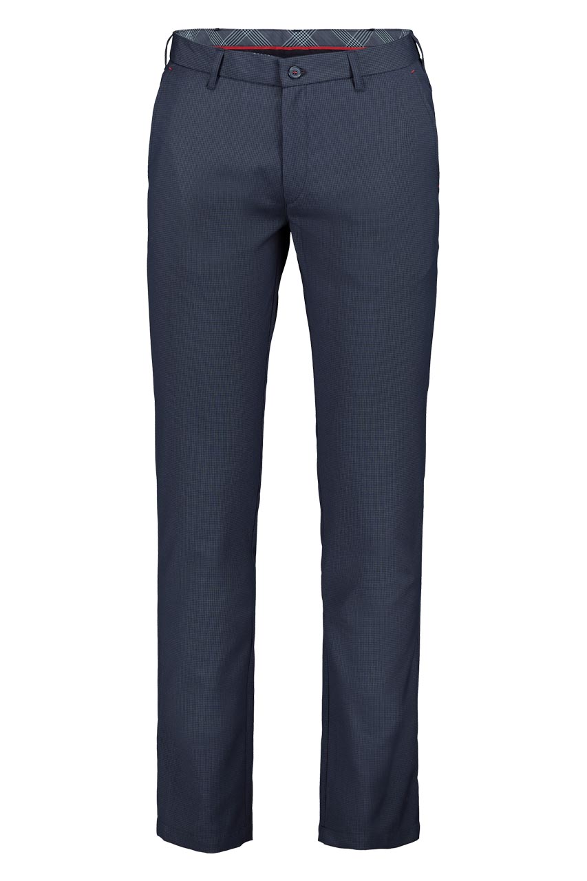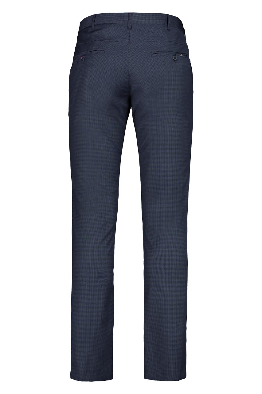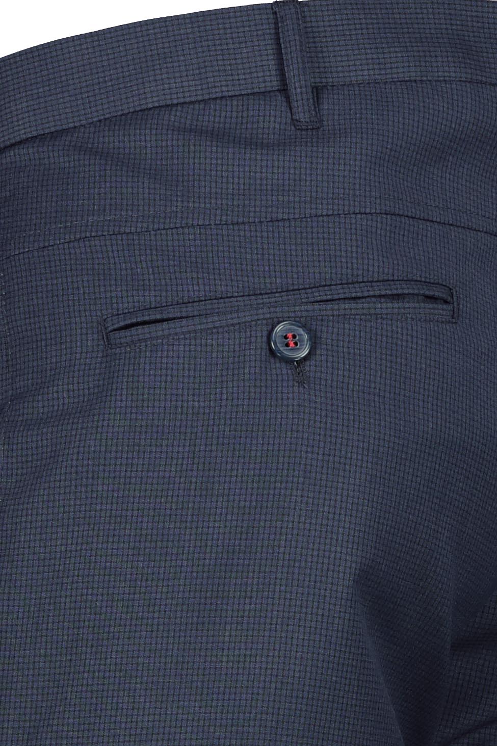 Spodnie chinos w odcieniu jasnego granatu, wykonane z przyjemnej w dotyku tkaniny w subtelny wzór kratki. Dopasowane spodnie stanowią doskonałą bazę dla wielu casualowych stylizacji. Wspaniale sprawdzą się w pracy, jak również w nieformalnych zestawieniach z wełnianym golfem i brązowymi sneakersami.