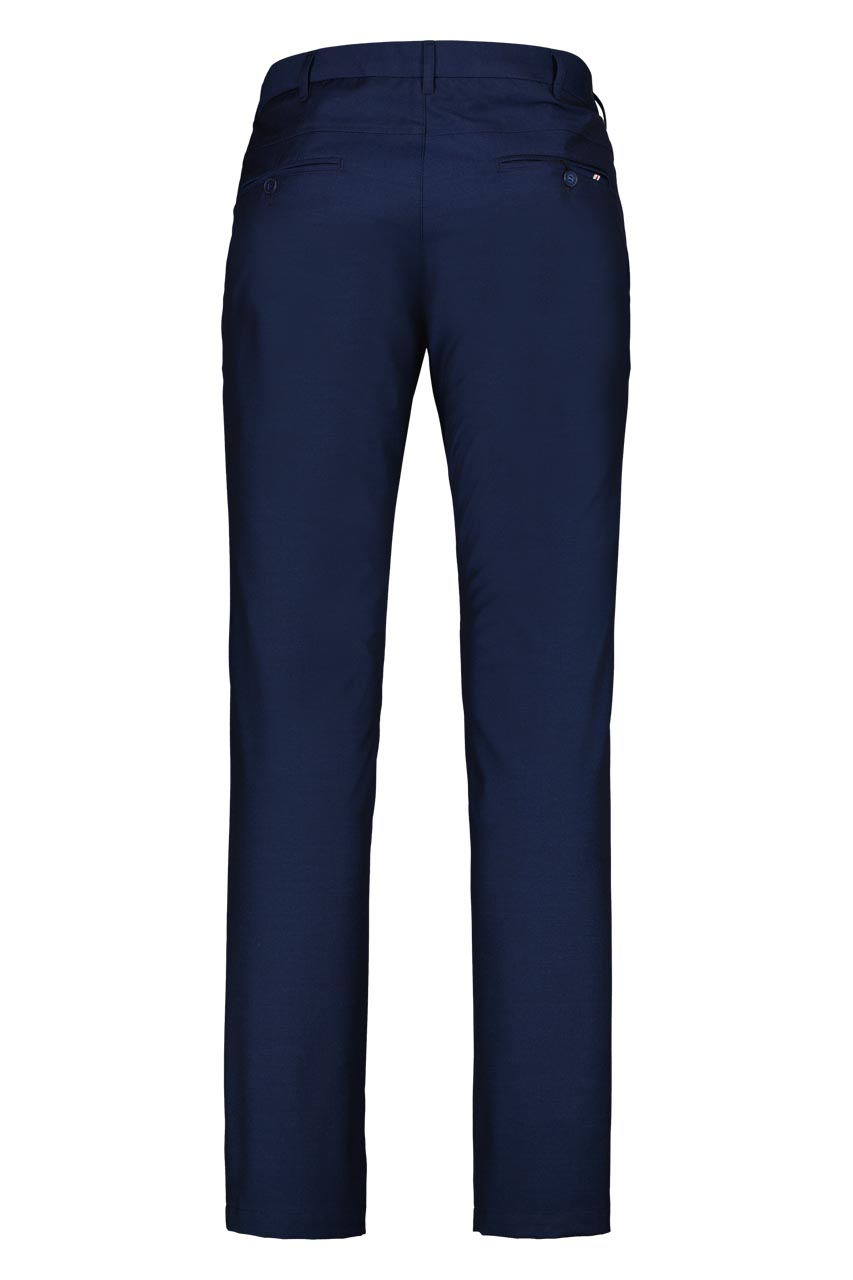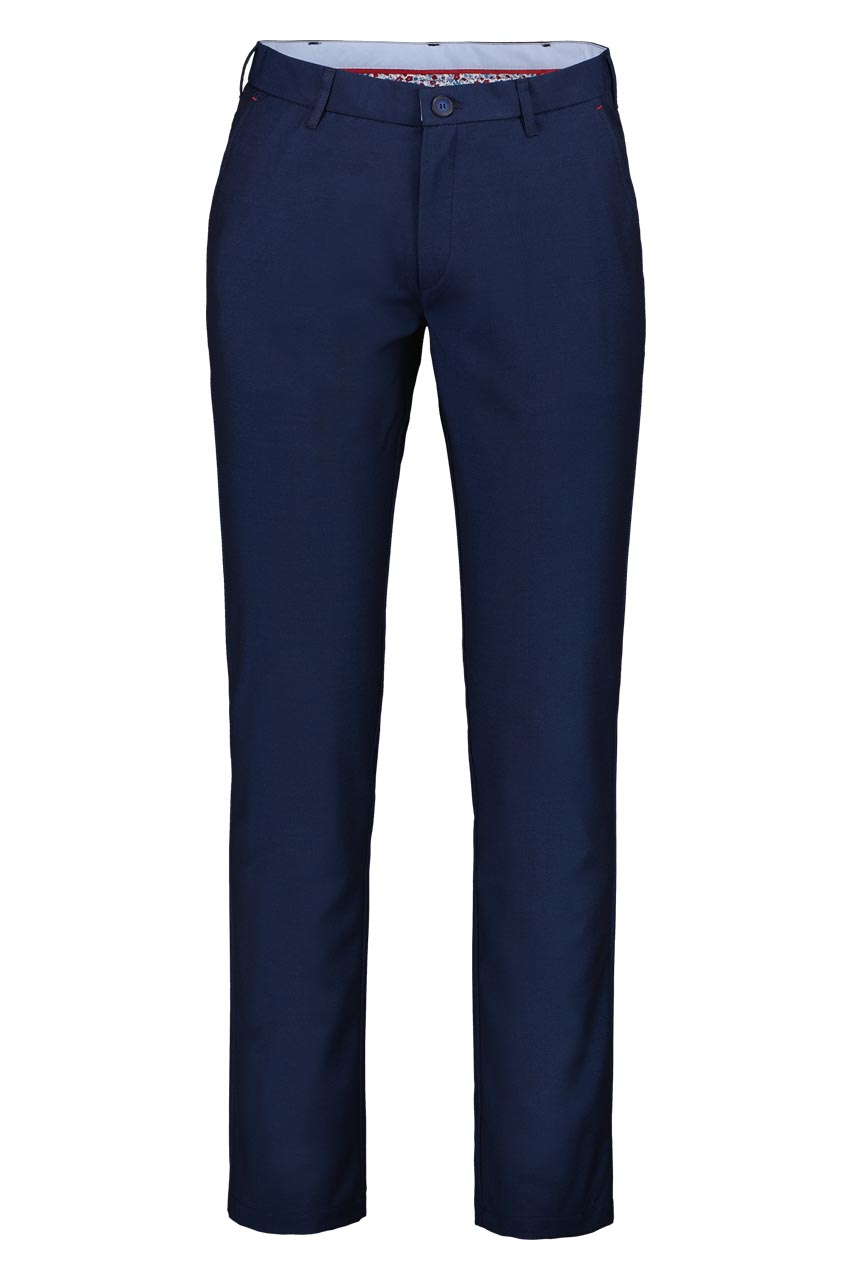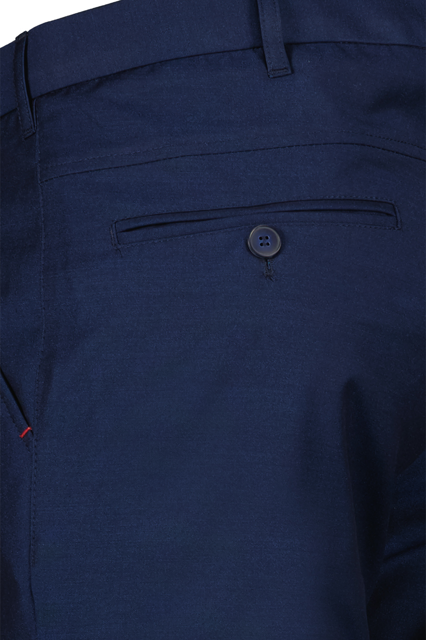 Granatowe spodnie Chinos wykonane z przyjemnej w dotyku tkaniny. Świetny dopasowany model do casualowych zestawień. W towarzystwie marynarki i koszuli wspaniale spisze się w pracy, natomiast z golfem i sneakersami stworzy niebanalny codzienny zestaw "after hours".