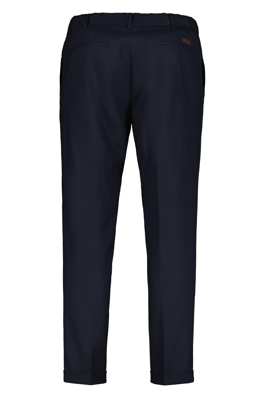 Granatowe spodnie męskie joggery z mankietami i kantem 64169
