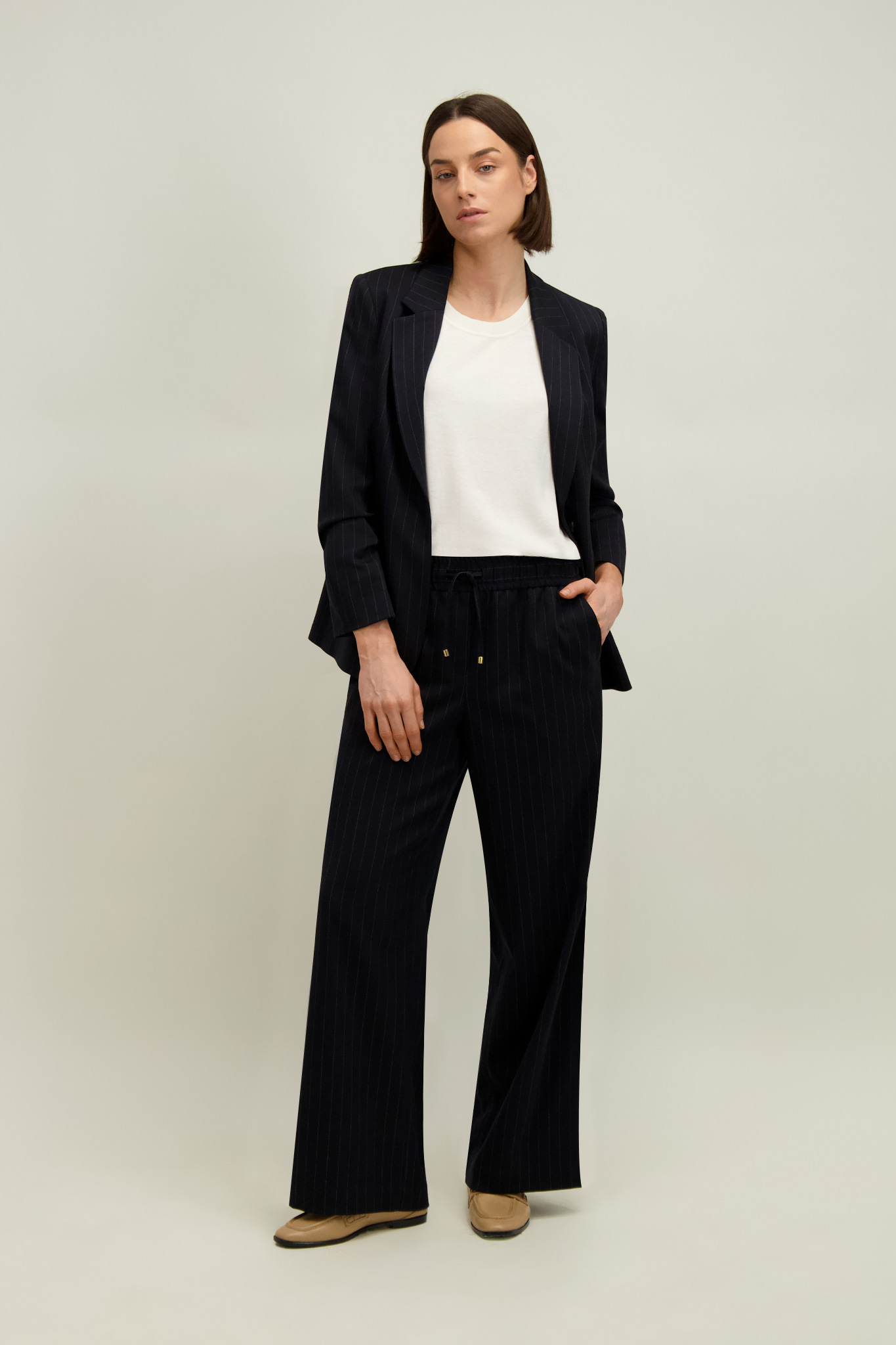 Spodnie z marynarką (87652) z tej samej tkaniny tworzą garnitur.