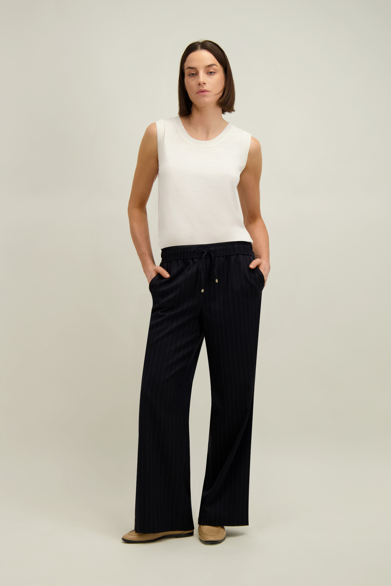 Granatowo-beżowe spodnie damskie 87653