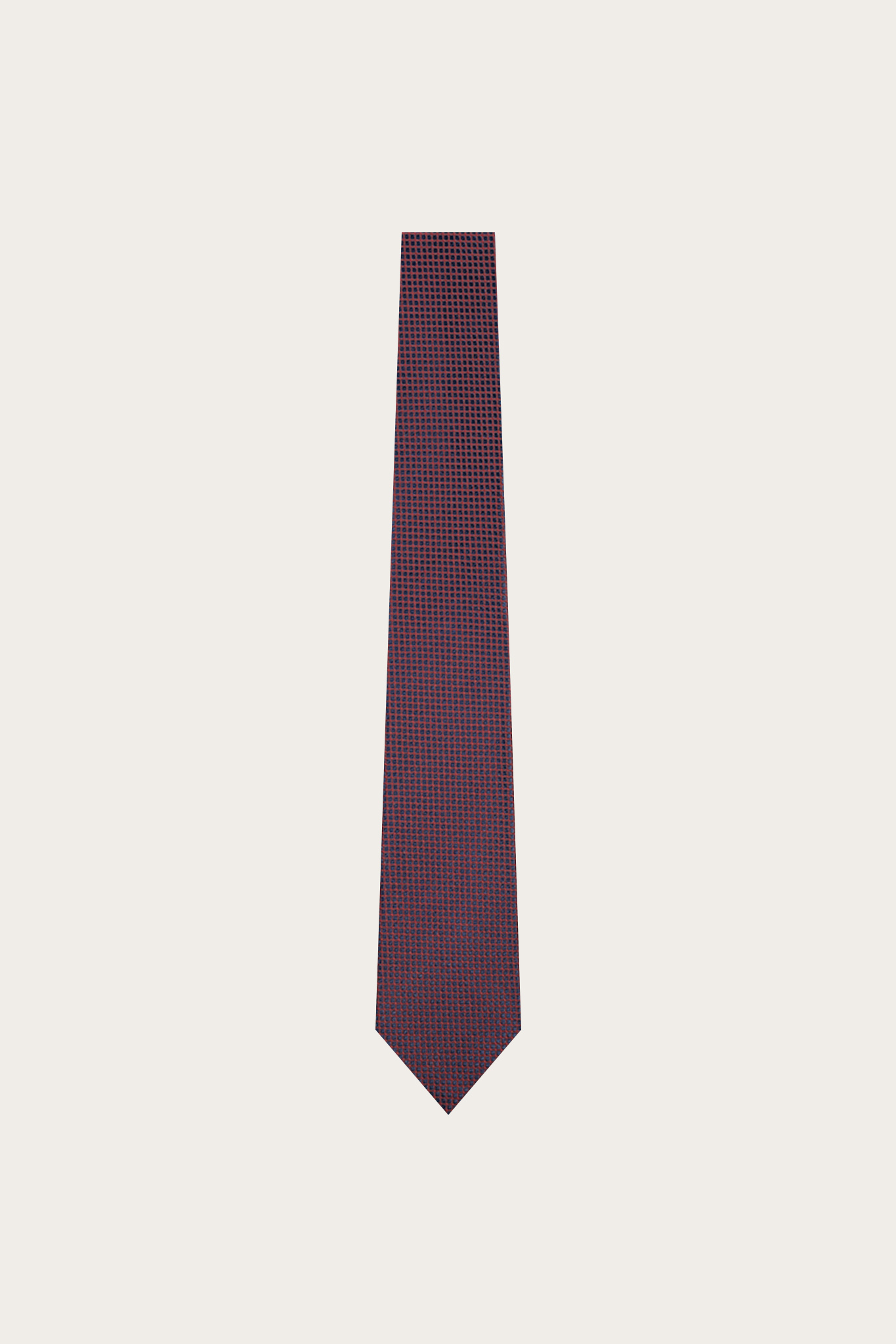 Granatowo-bordowy krawat w mikrowzór 73306 - 652371
