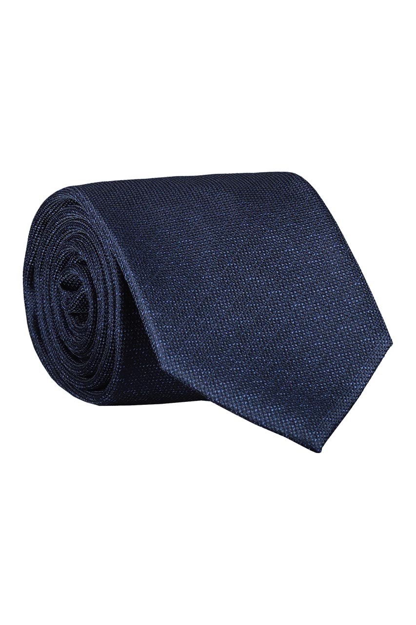 Granatowy krawat męski w lekko melanżowy deseń. Klasyczny model, idealny do biznesowych stylizacji. Doskonale prezentuje się z granatowym garniturem.