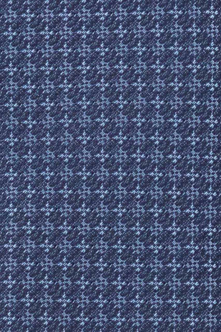 Granatowy krawat w niebieski wzór. Model wykonany z tkaniny z połyskiem. Model o szerokości 8 cm.