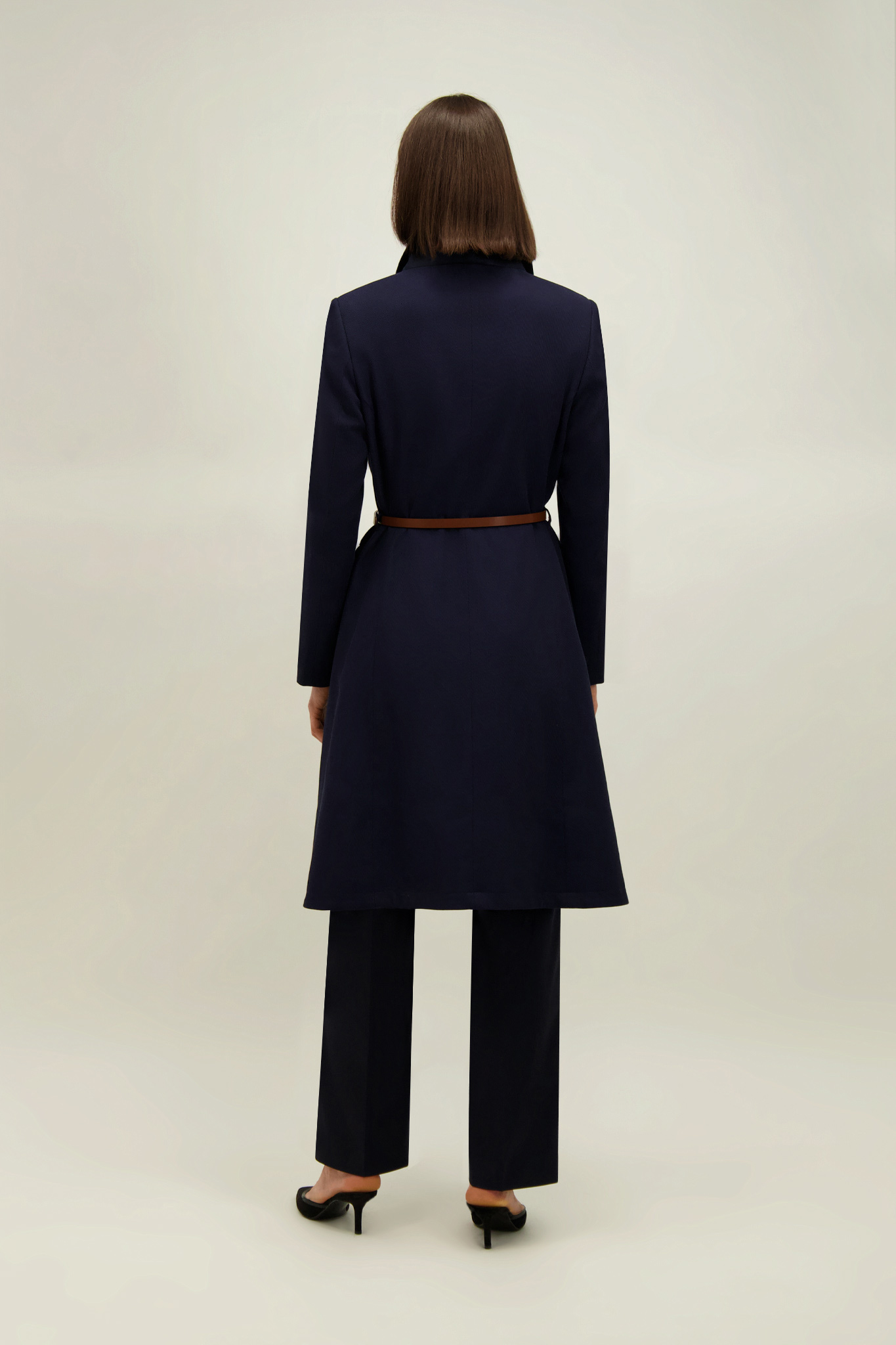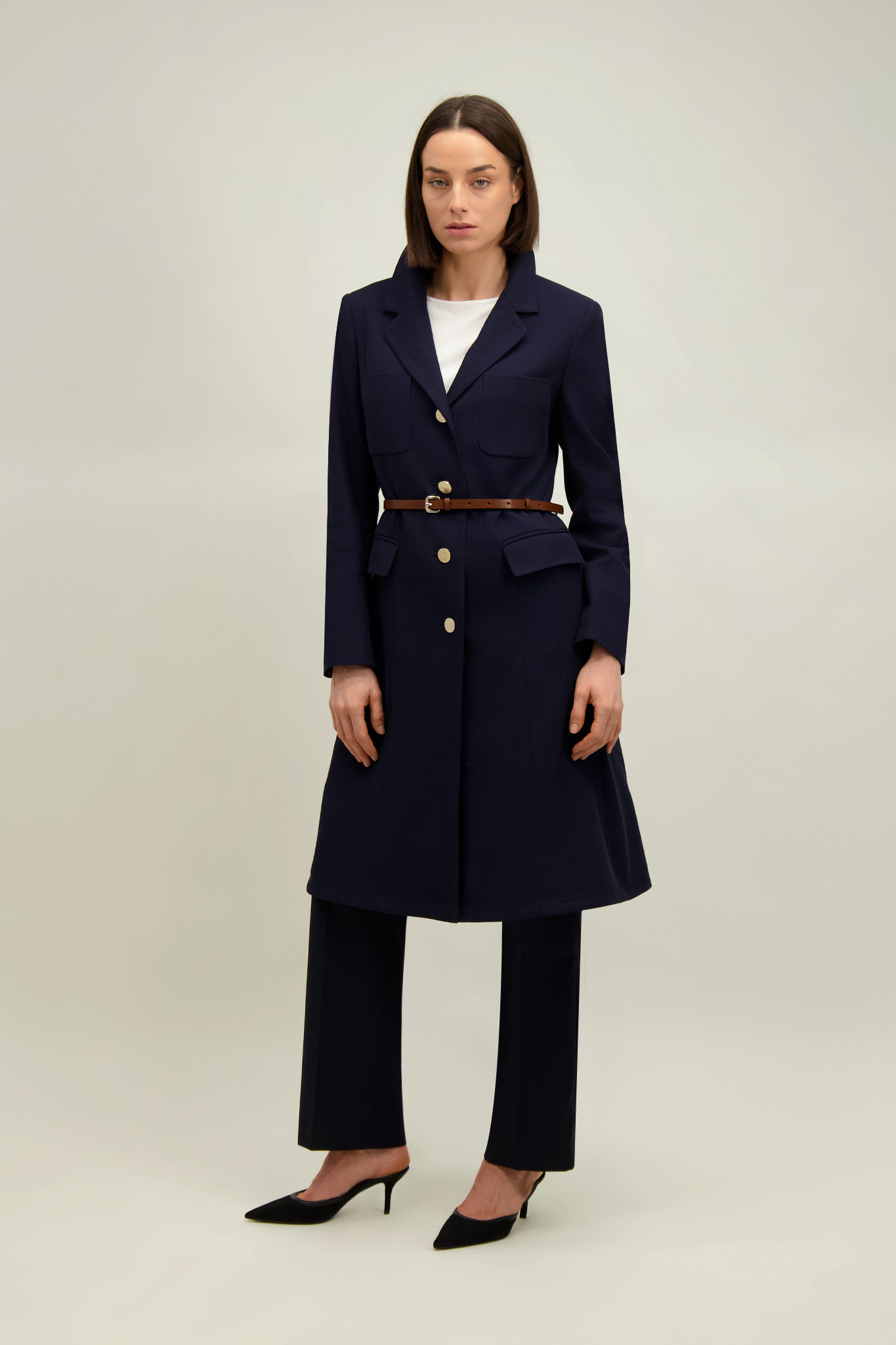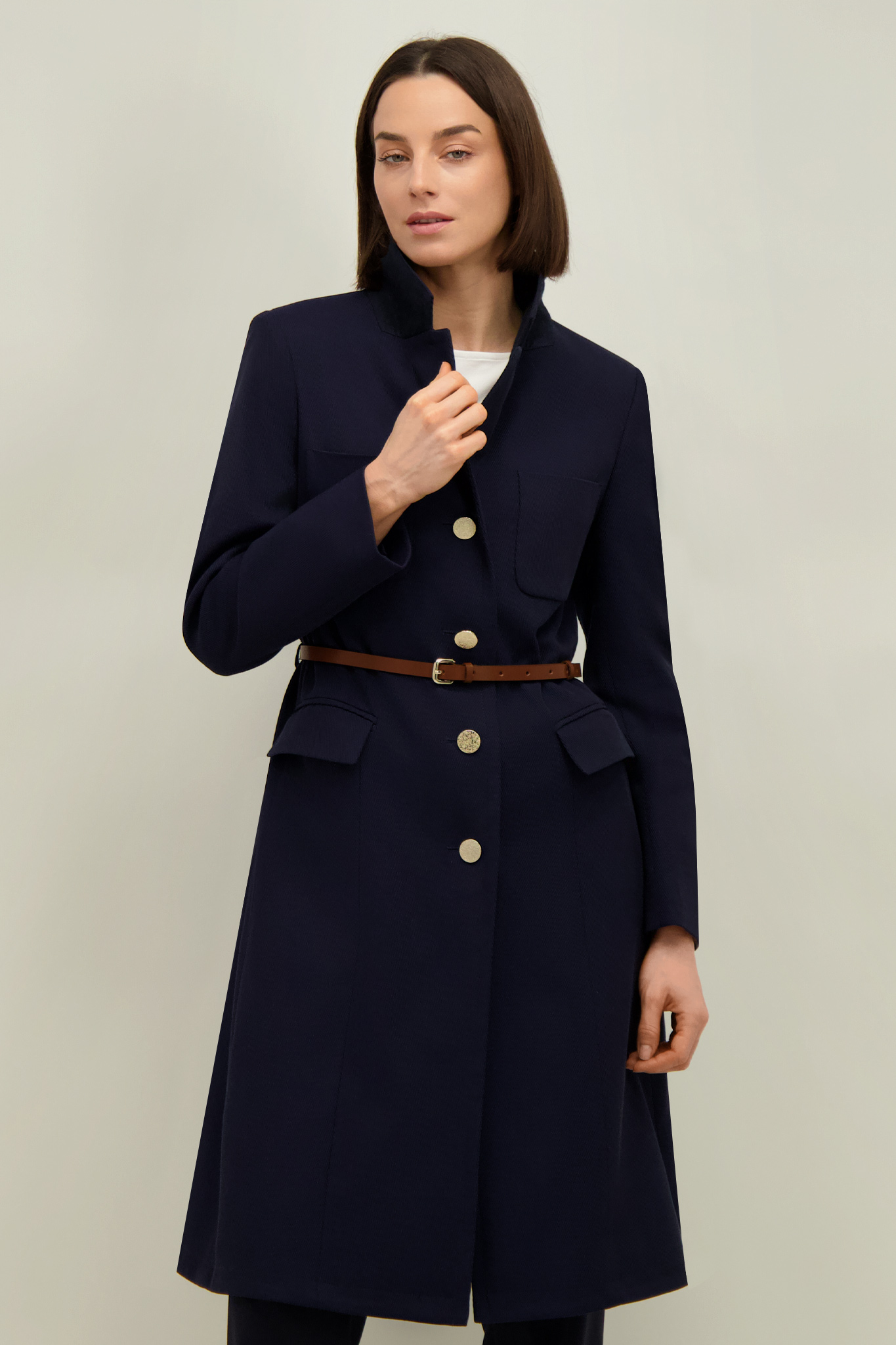 Granatowy płaszcz damski z bawełną 87584