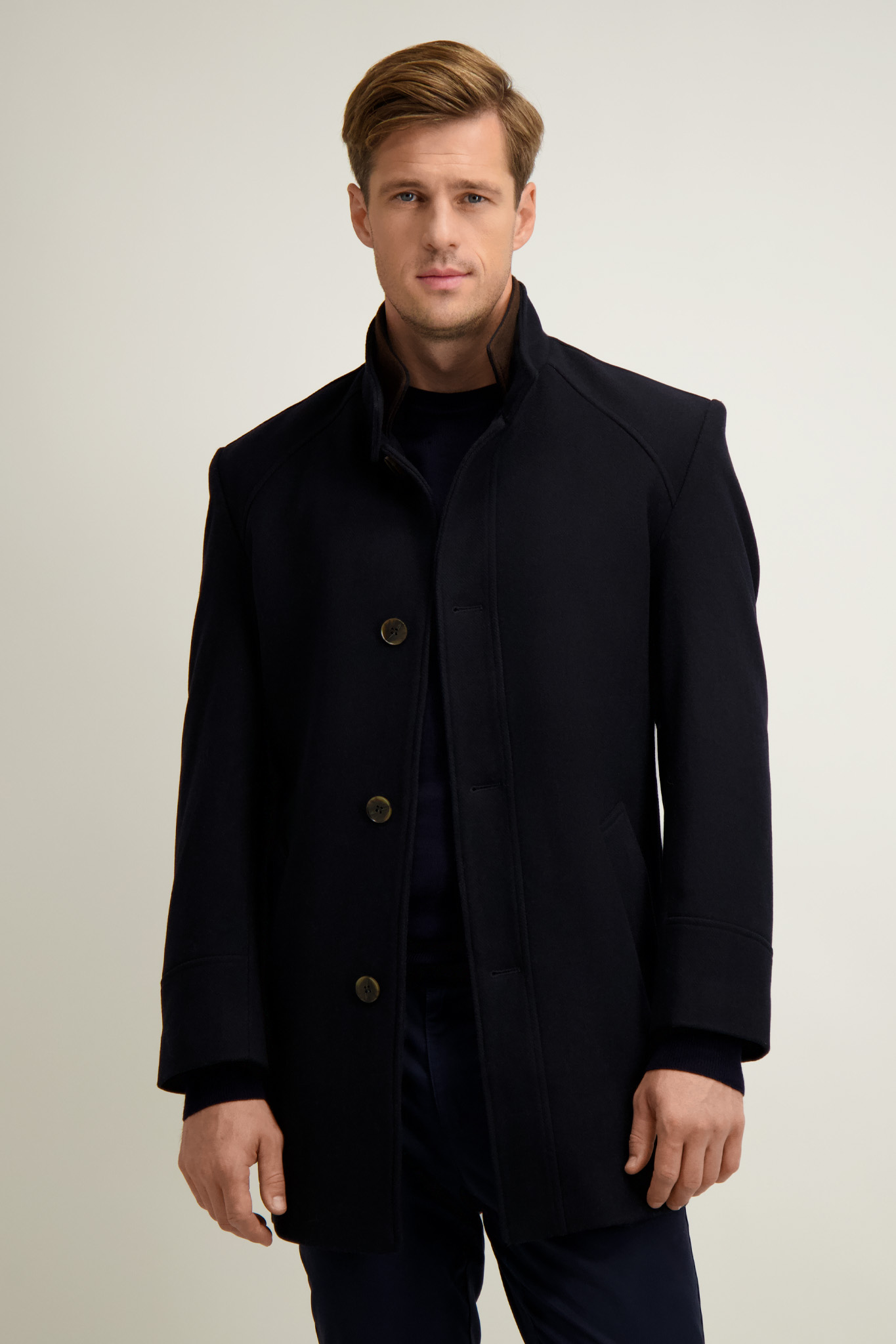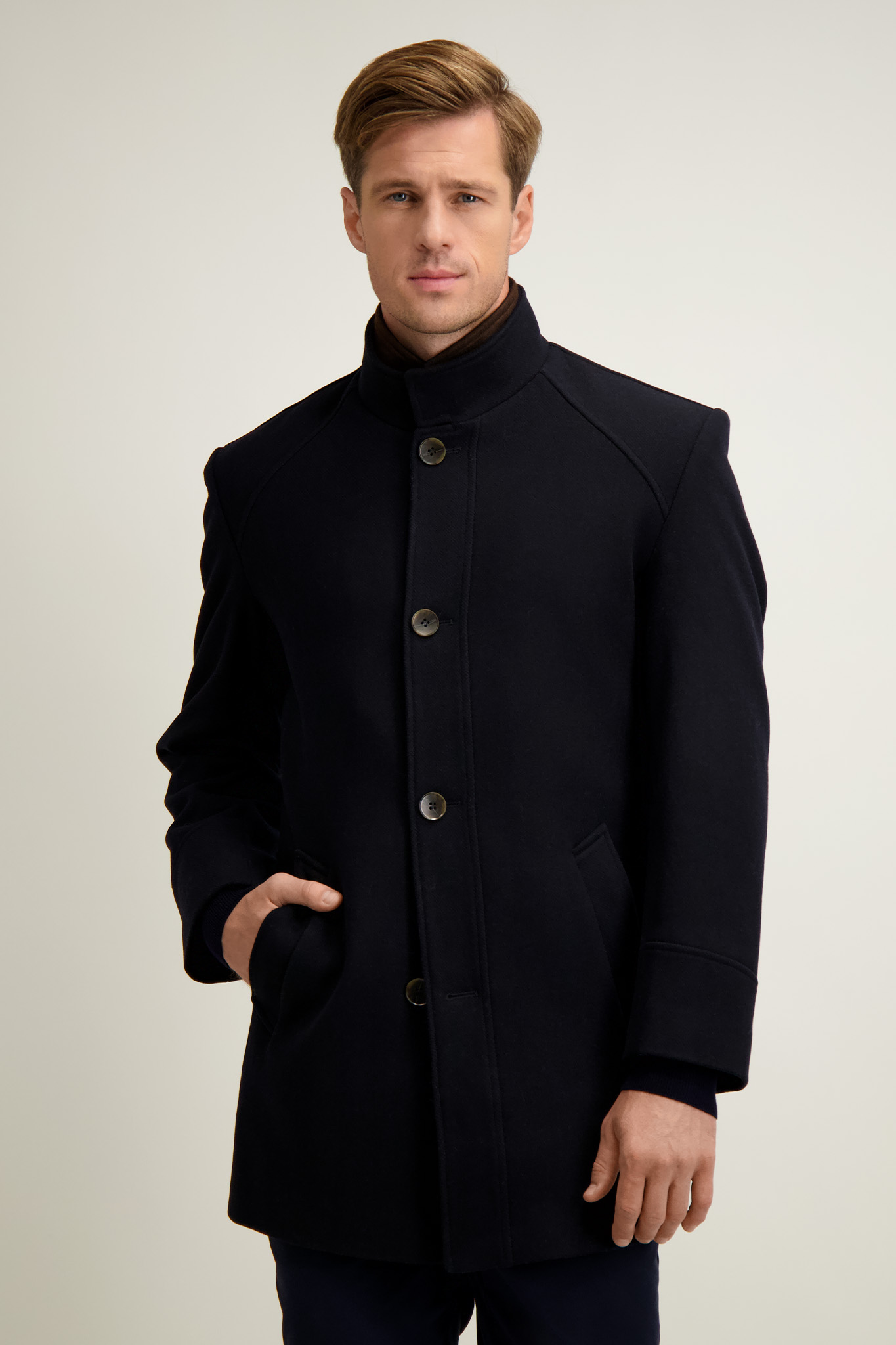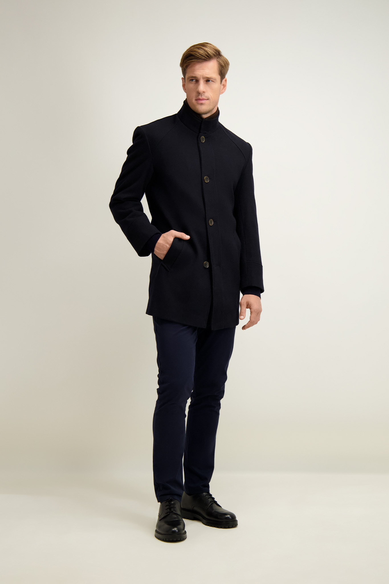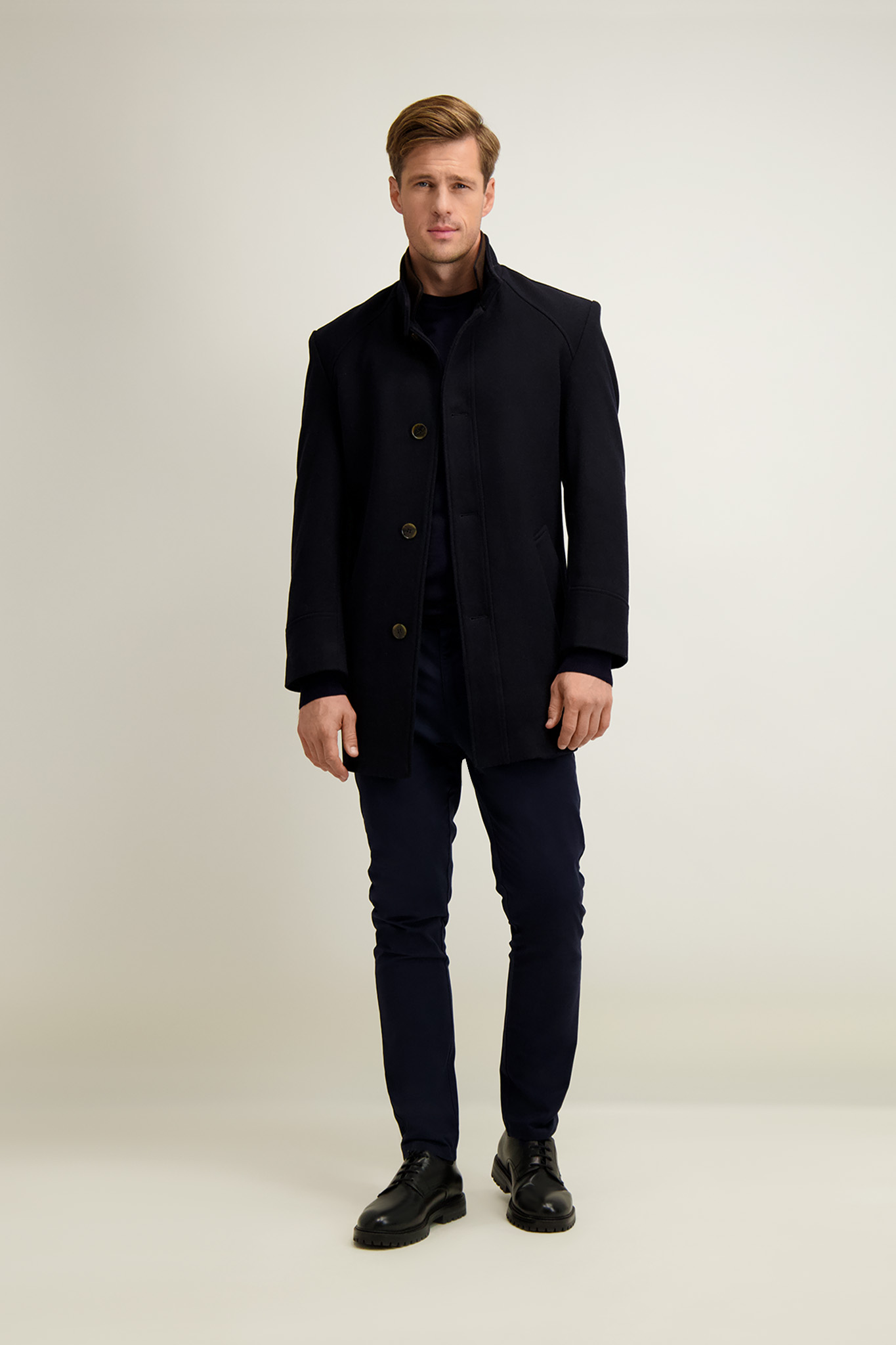 Granatowy płaszcz meski z wełną 20068