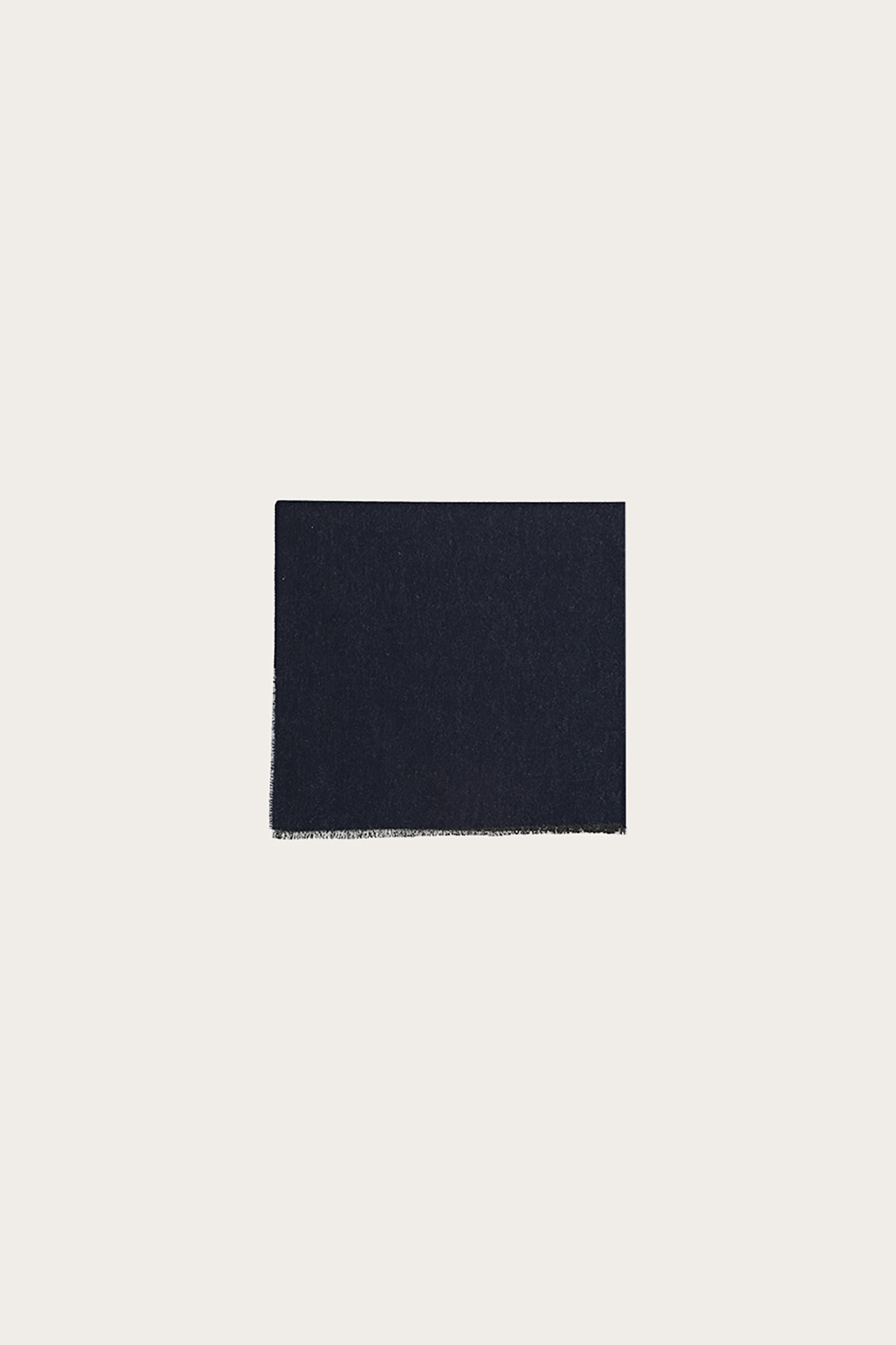 Gładki, granatowy szal wykonany z miękkiej i przyjemnej w dotyku tkaniny.