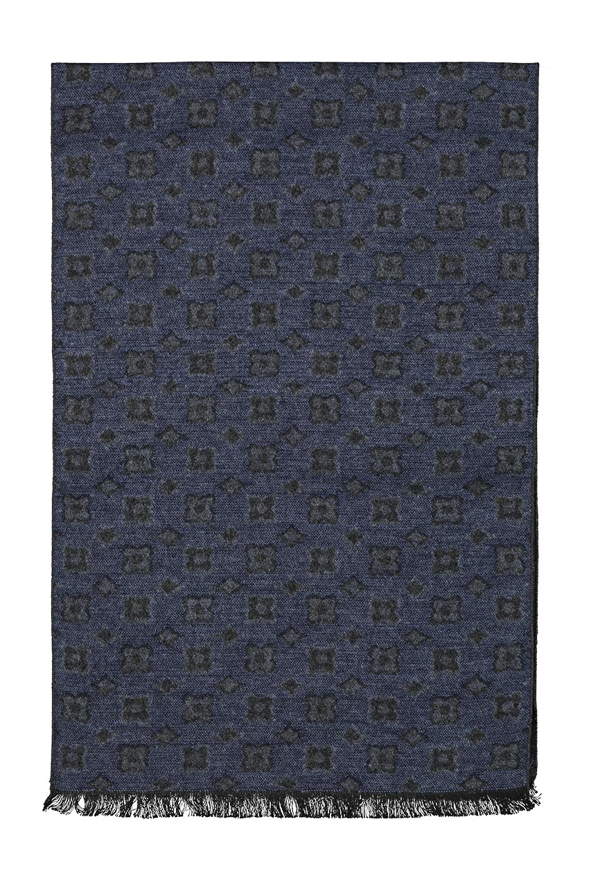 Granatowy szal we wzory w szarym odcieniu. Propozycja wykonana z wiskozy. To tkanina, która doskonale chłonie wilgoć, dzięki czemu nosząc ją, na pewno nie zgrzejemy się, ani nie spocimy. Dodatkowo jest bardzo przyjemna w dotyku, co znacznie wpływa na komfort użytkowania. Szal świetnie układa się i doskonale odnajdzie się w eleganckich oraz casualowych zestawieniach.