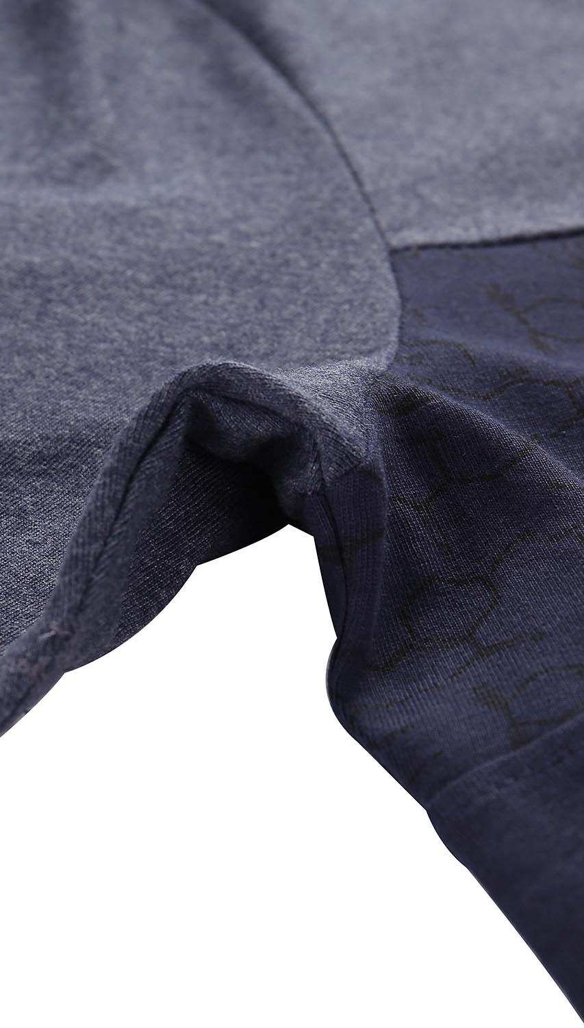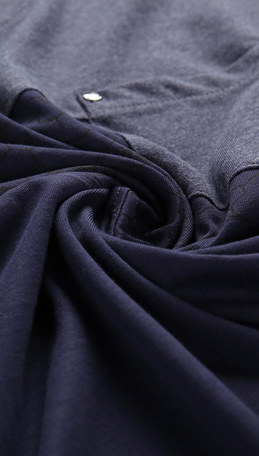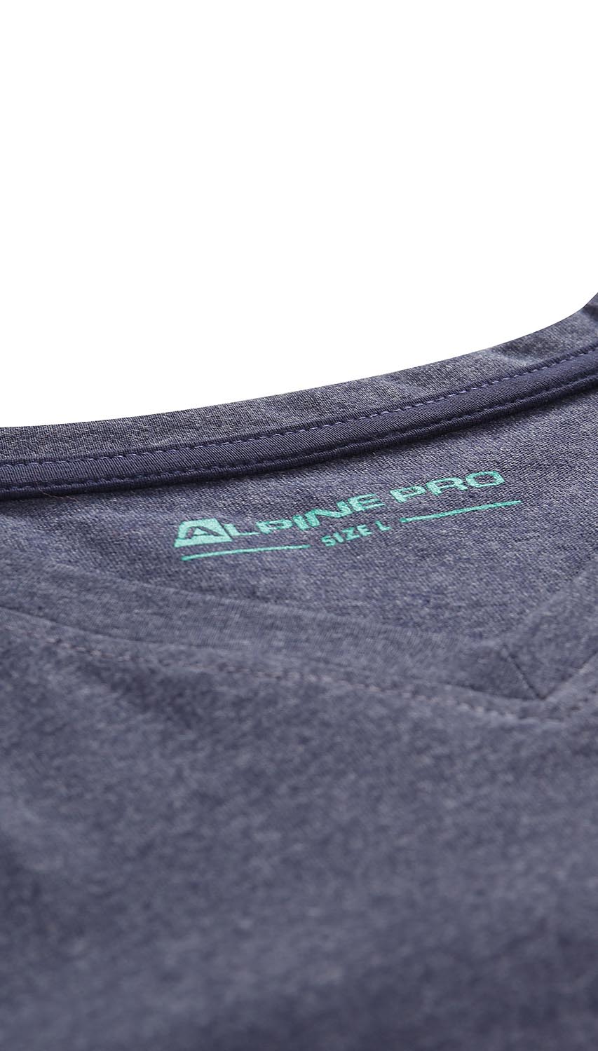 Granatowy t-shirt z dekoltem V-neck. Uszyty z wysokiej jakości bawełny uzyskiwanej w procesie technologicznym sprzyjającym naturze. Naturalne włókna zapewniają wysoki komfort użytkowania i wygodę. Co więcej, tkanina bawełniana jest przyjazna dla osób uczulonych i cierpiących na alergie. Koszulka o regularnym kroju, doskonale układa się na sylwetce. To model z łączonych tkanin, który fantastycznie odnajdzie się podczas, spacerów czy spotkań z przyjaciółmi.