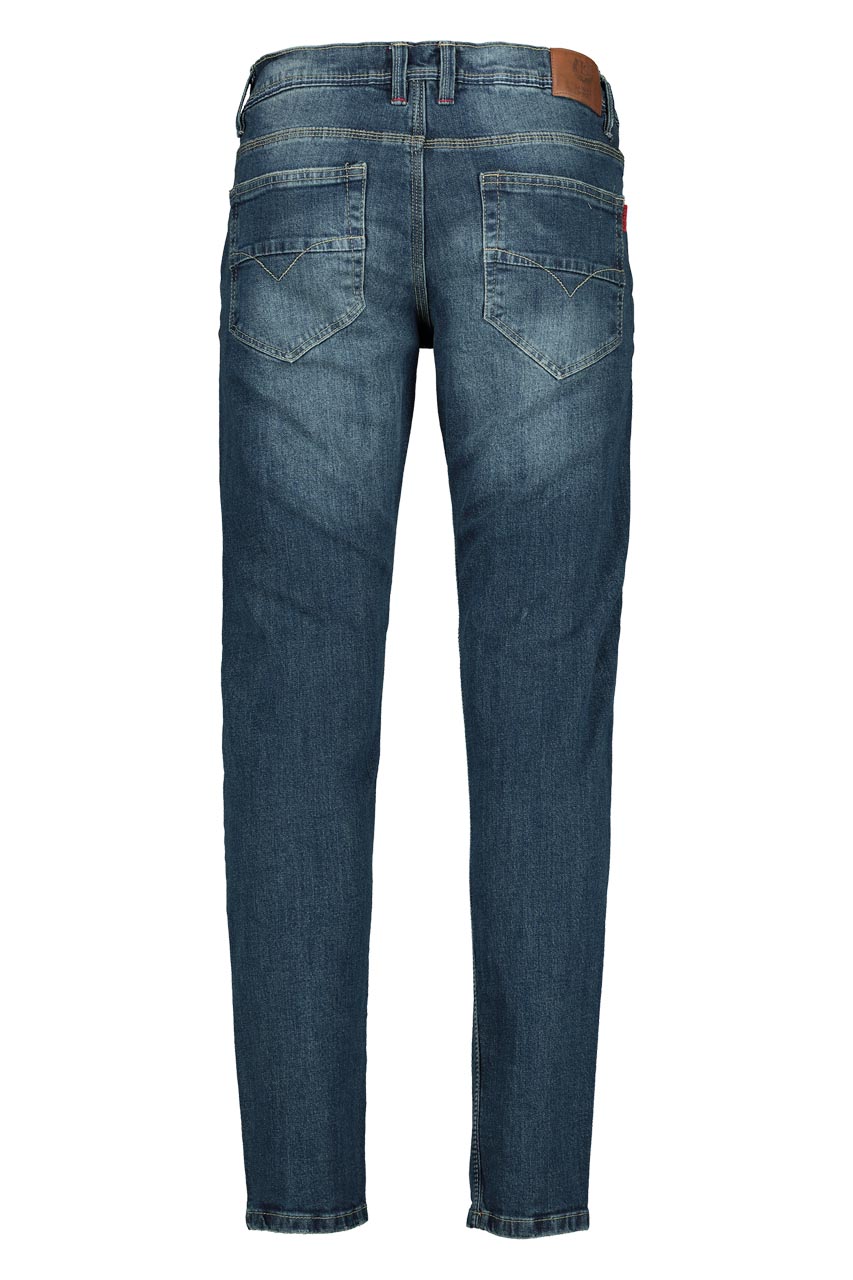 Jeansy męskie z „efektem prania”. Model o klasycznym kroju, doskonale pasuje do wielu nieformalnych zestawień. Świetnie prezentuje się z grubym wełnianym golfem i wysokimi trzewikami.