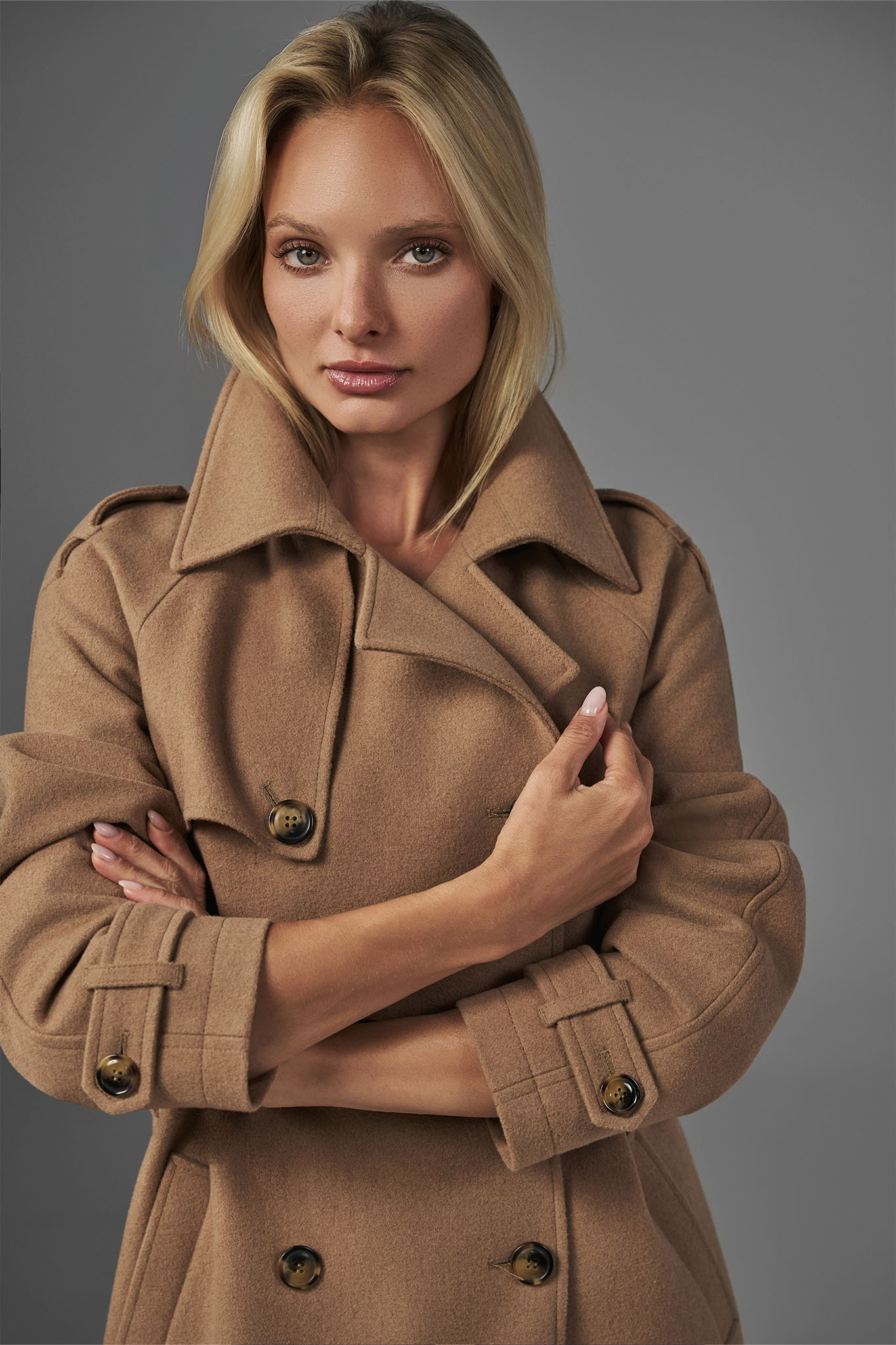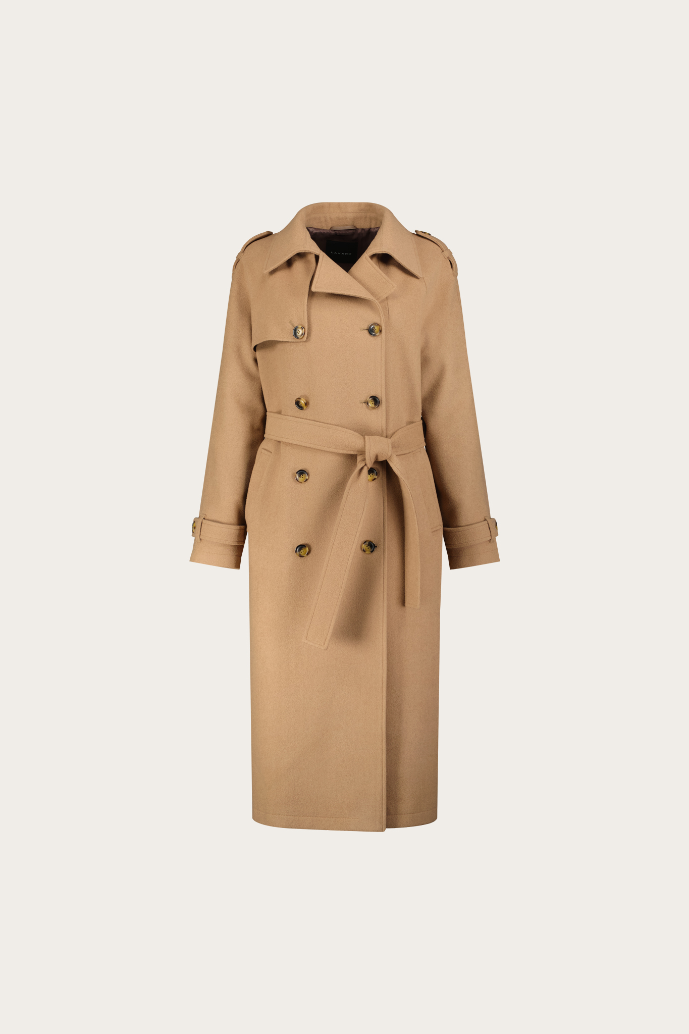 Kamelowy płaszcz damski z wełną 87411