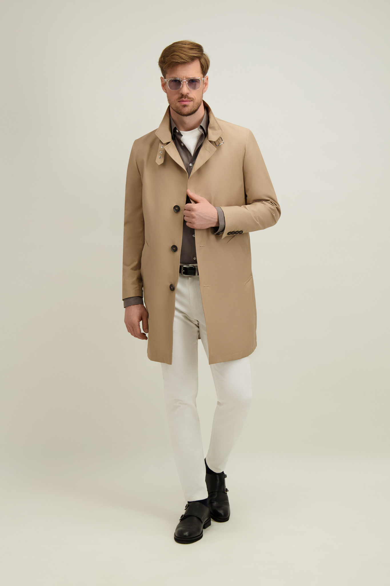 Kamelowy płaszcz męski z bawełną 20217 - 657771