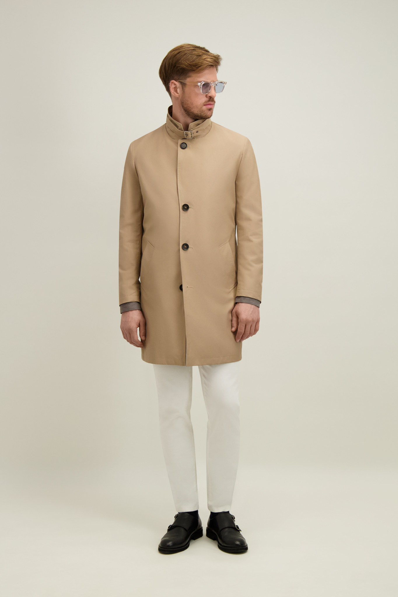 Kamelowy płaszcz męski z bawełną 20217 - 657781