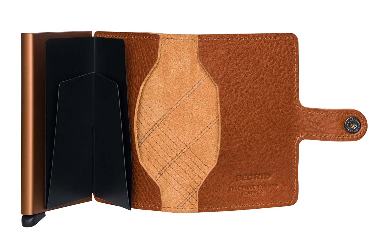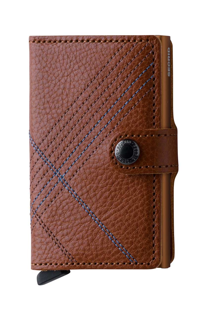 Portfel który łączy w sobie klasykę i nowoczesność. Wykonany z najwyższej jakości naturalnej skóry, utrzymanej w karmelowym odcieniu z ozdobnymi szwami w kolorze brązu i niebieskiego, nawiązującymi do ponadczasowej kraty. Główną częścią portfela jest aluminiowy ochraniacz na karty Cardprotektor, który chroni przed złamaniem, zagięciem, a przede wszystkim przed zdalnym odczytaniem karty. Cardprotektor mieści od 1 do 6 kart. Portfel posiada system kliknięcia, dzięki któremu jednym szybkim ruchem można wysunąć karty. Dodatkowo wewnętrzna zakładka do noszenia banknotów, oraz praktyczne przegródki na wizytówki. Wymiary portfela to 10cmx7cm.