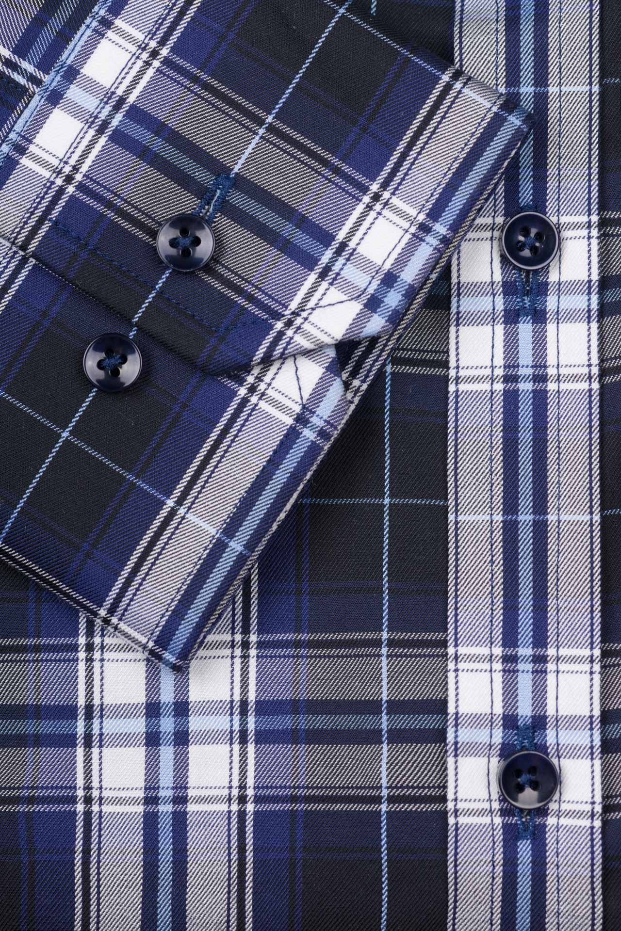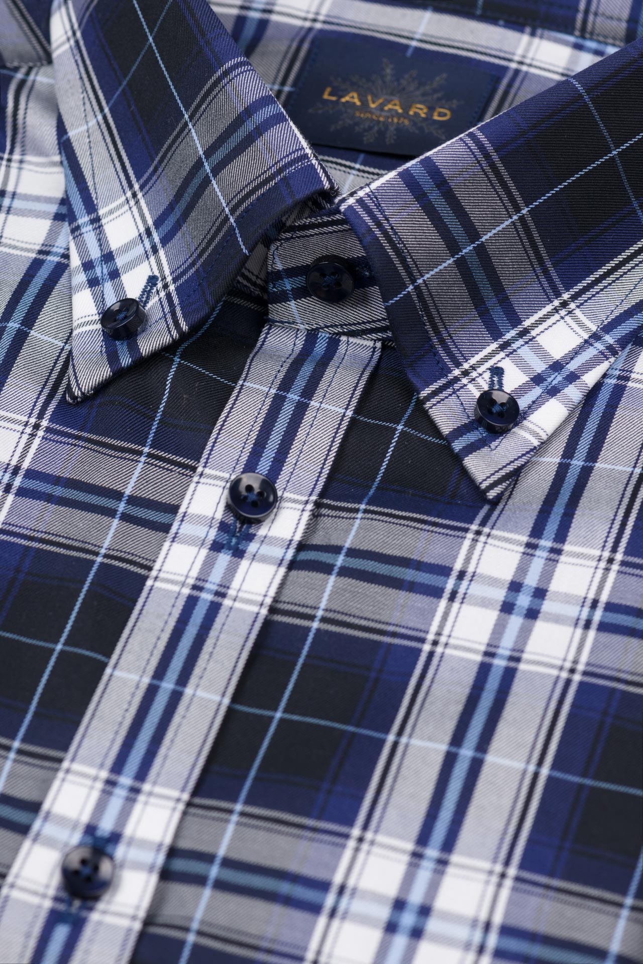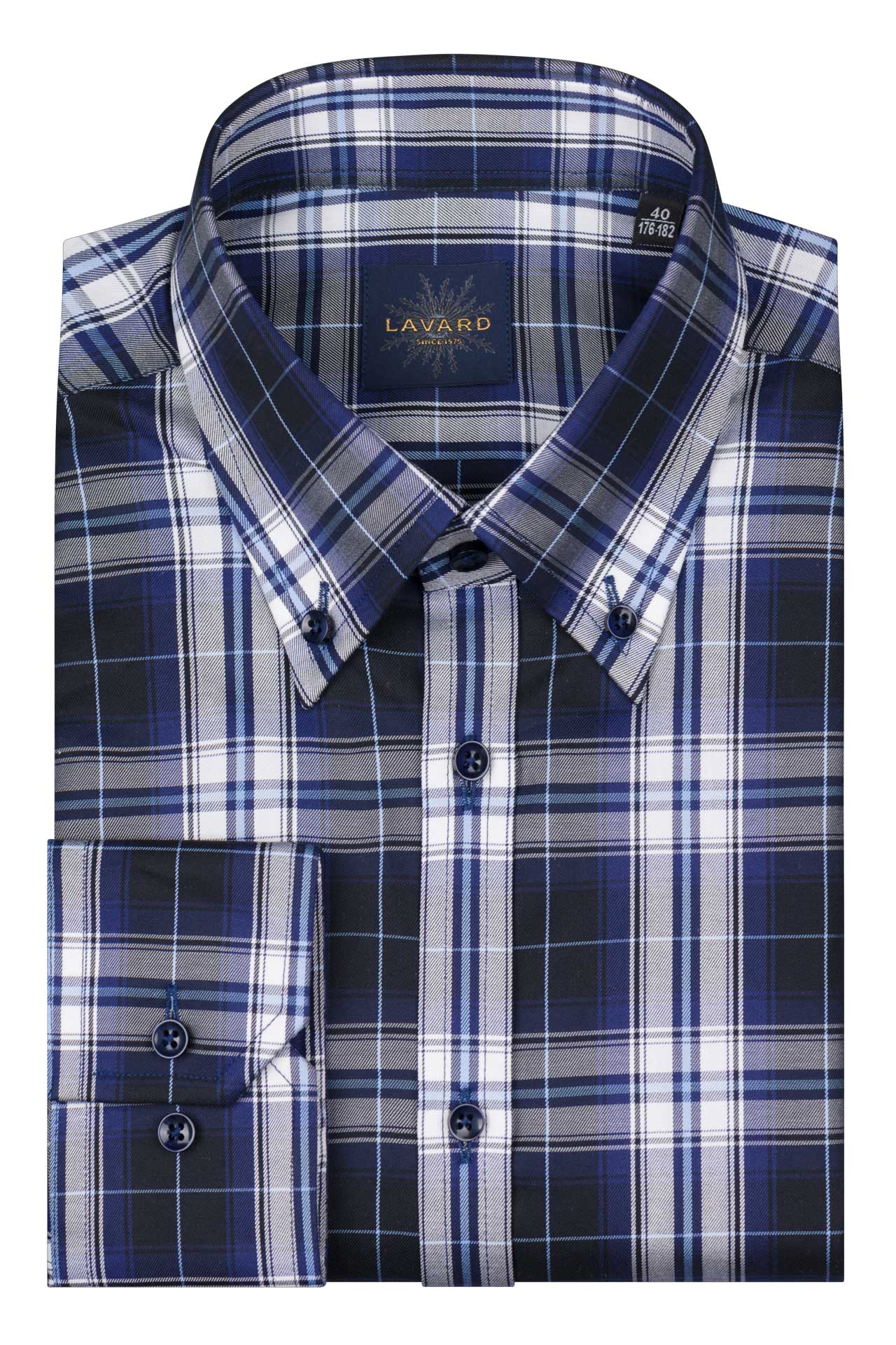 Koszula męska w kratę utrzymana w granatowej kolorystyce. Model z wyjątkowej linii Lavard Gold stworzonej dla mężczyzn ceniących styl, dobrą jakość oraz klasę. Koszula z najwyższej jakości bawełny. Propozycja o dopasowanym kroju, doskonała do nieformalnych zestawień.