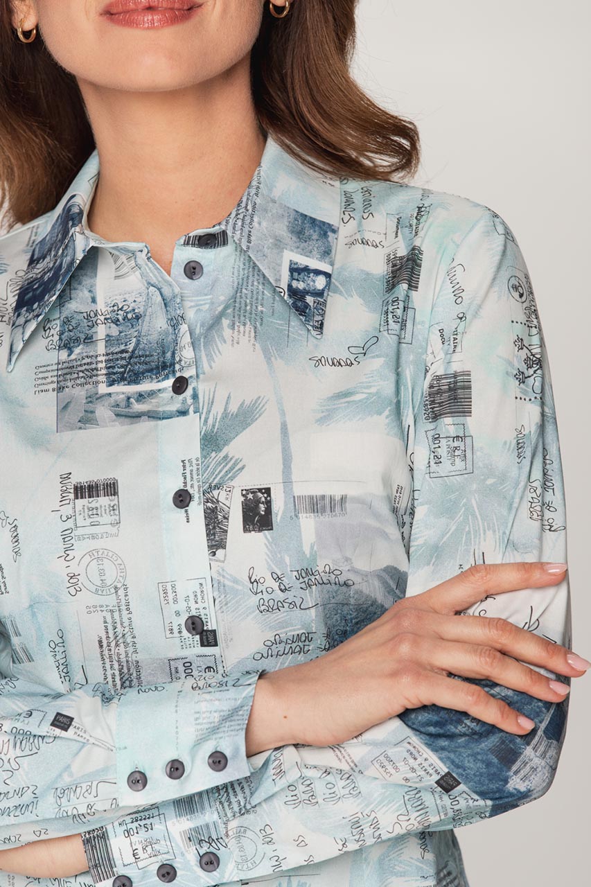 Koszula damska o lekko taliowanym fasonie, który podkreśla kobiecą sylwetkę . Model z długim rękawem zakończonym mankietem zapinanym na trzy guziki. Koszula uszyta z wysokiej jakości bawełnianej tkaniny z niewielkim dodatkiem elastanu, który wpływa na większą trwałość tkaniny i podnosi jej sprężystość. Koszula w zależności od doboru dodatków doskonale sprawdzi się na co dzień jak i w pracy.