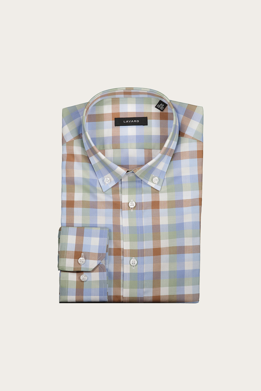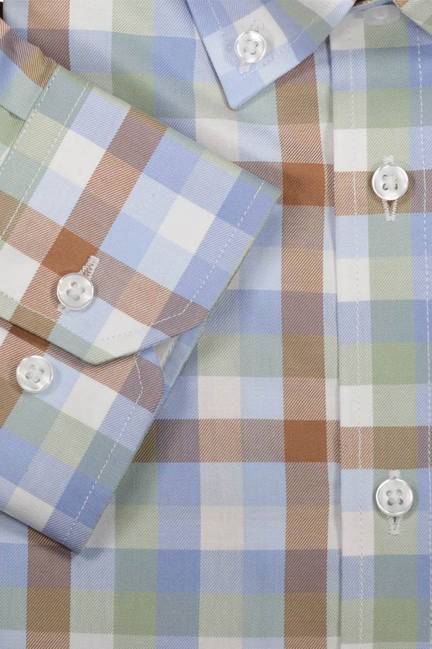 Koszula w kolorową kratę, uszyta z bawełnianej tkaniny. Model o dopasowanym fasonie. Koszula z długim rękawem.
