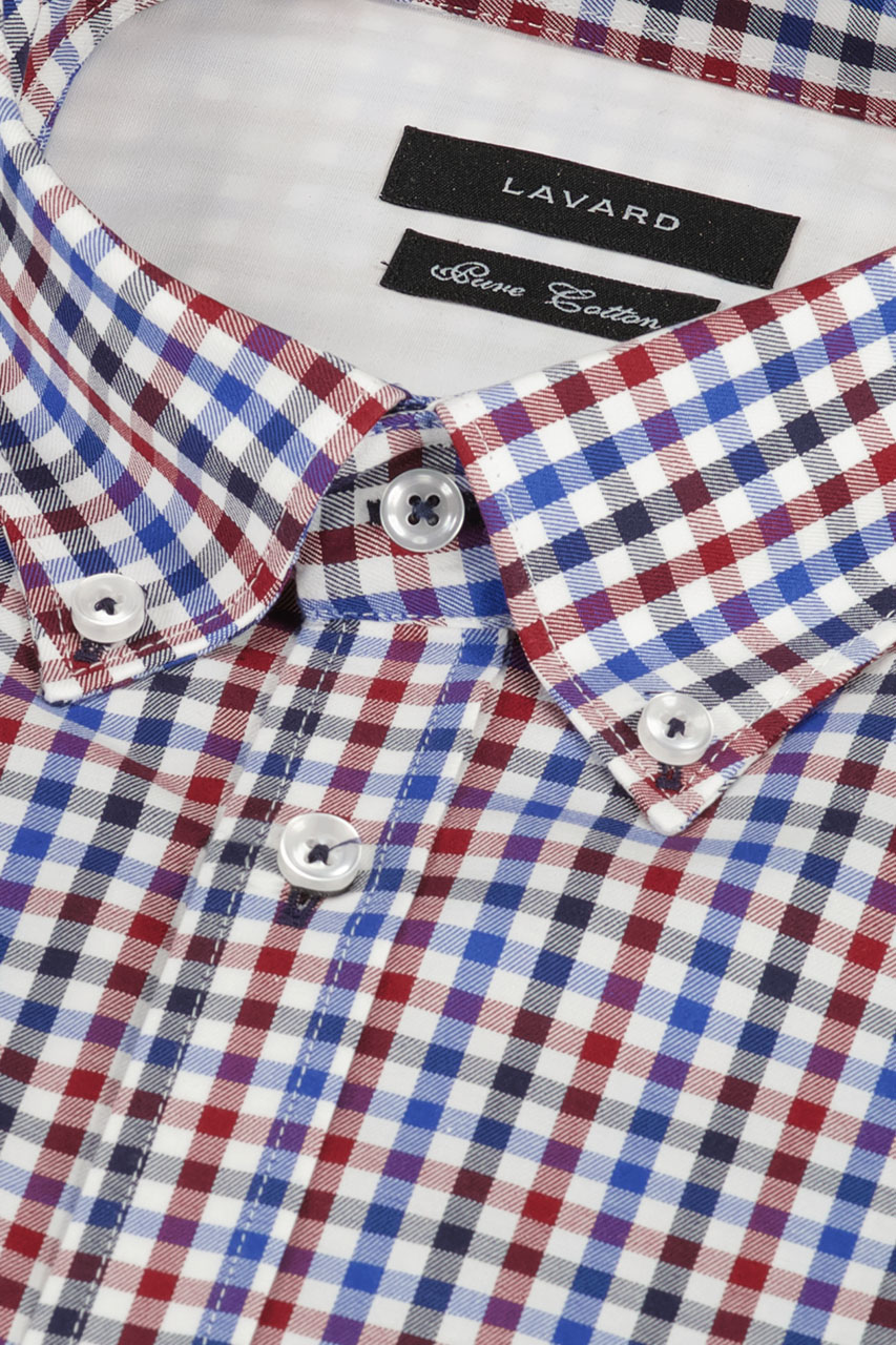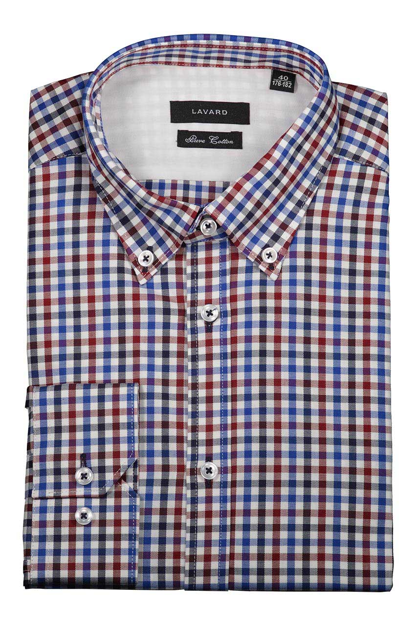 Casualowa koszula męska z długim rękawem. Luźniejszego charakteru dodaje jej kołnierzyk typu „button down” oraz drobna kratka w odcieniach czerni, bordo oraz niebieskiego na białym tle. Koszula posiada fason typu slim, dlatego fantastycznie sprawdzi się panom, którzy preferują bardziej dopasowane kroje. Dzięki wyjątkowo miękkiej tkaninie bawełnianej koszula zapewnia wysoką jakość użytkowania, nawet w cieplejsze dni. Sprawdzi się w zestawieniu z jeansami oraz klasycznymi sneakersami.