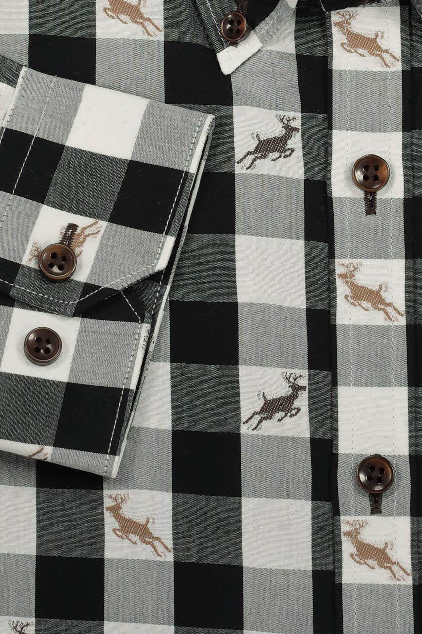 Koszula w biało-czarną kratę z subtelnym motywem zwierzęcym. Niebanalny model, który znajdzie uznanie w oczach każdego indywidualisty. Koszula o modnym, dopasowanym kroju. Uszyta z wysokiej jakości bawełny, dzięki czemu jest bardzo komfortowa w użytkowaniu. Propozycja doskonale sprawdzi się w mniej formalnych stylizacjach.