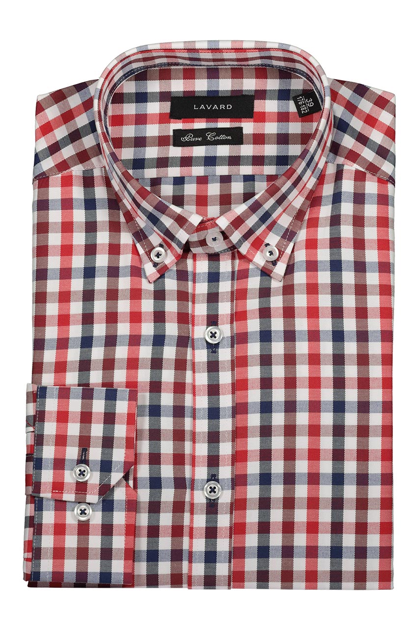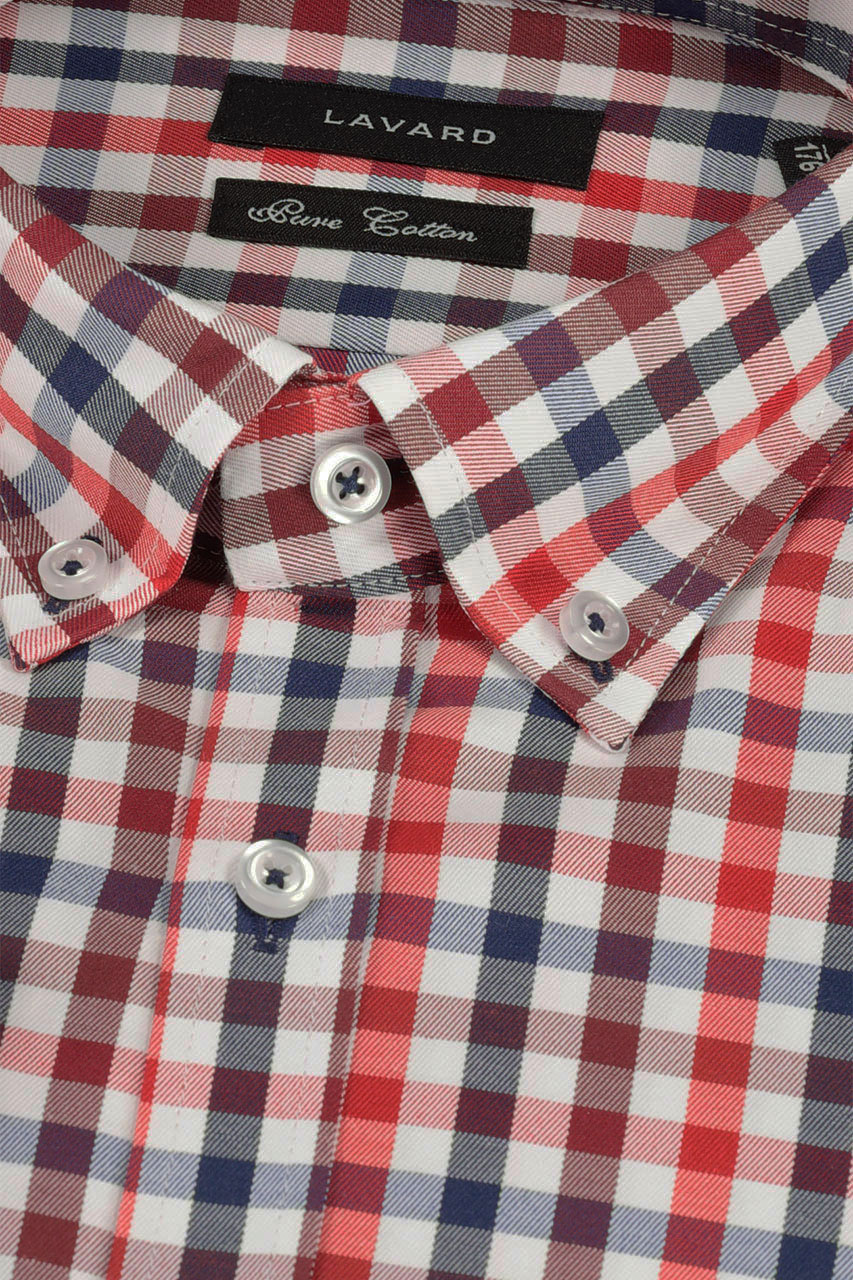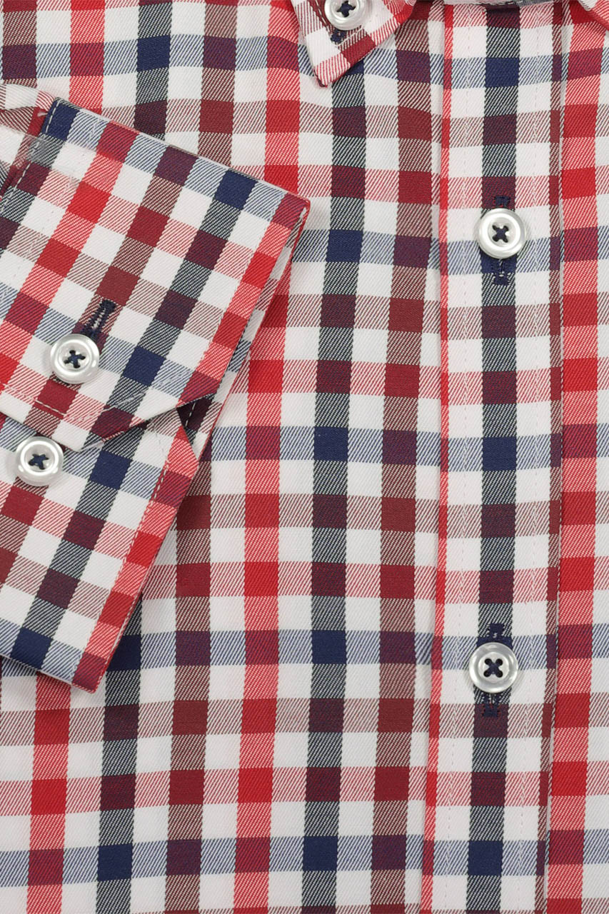 Koszula w kratkę utrzymana w białej, granatowej oraz czerwonej kolorystyce. To ponadczasowy wzór do miejskich zestawień. Idealnie prezentuje się z jeansami oraz granatowymi spodniami chino. Model z długim rękawem. Koszula o modnym dopasowanym kroju slim. Wykonana z najwyższej jakości bawełny, co gwarantuje wysoki komfort użytkowania.